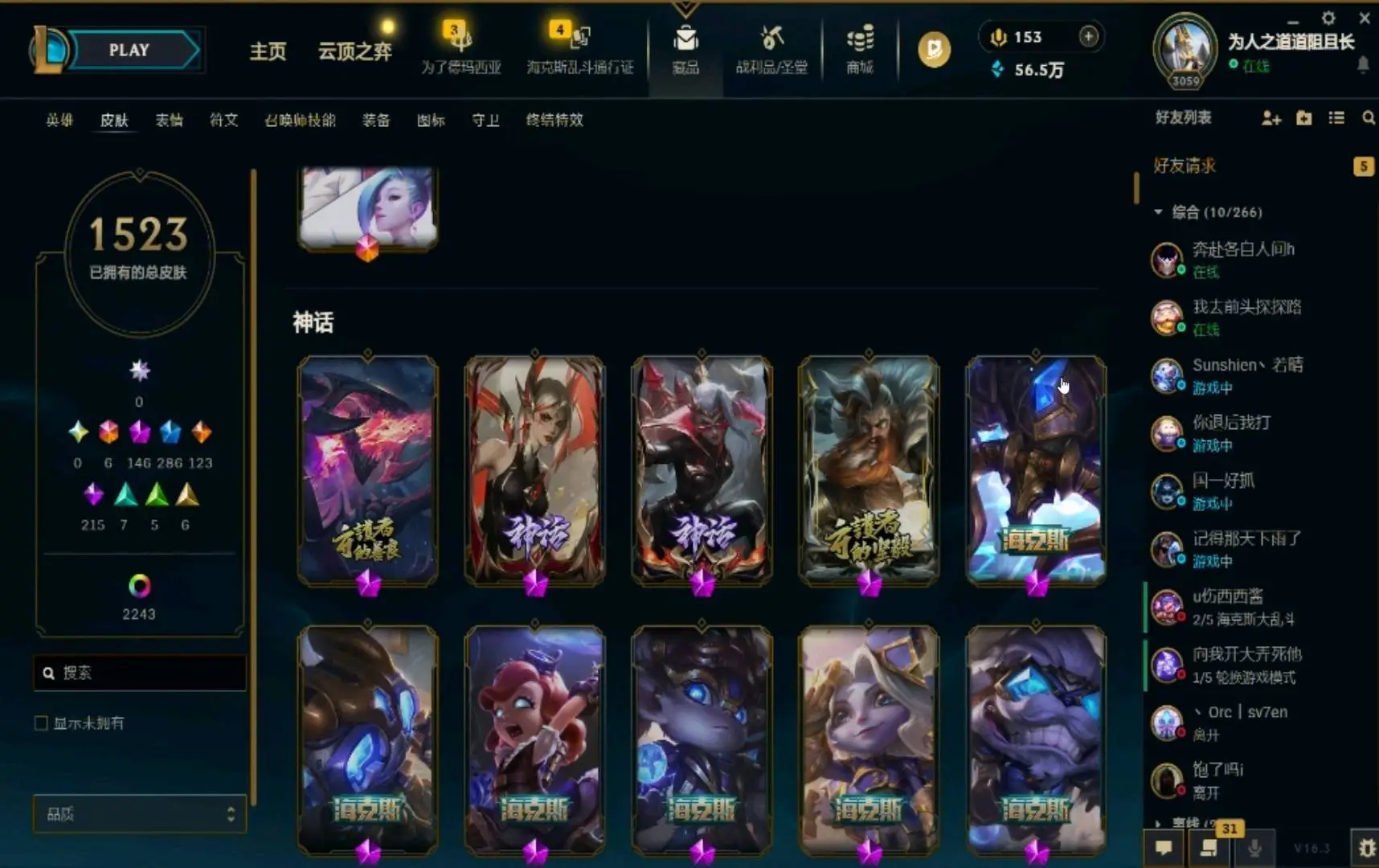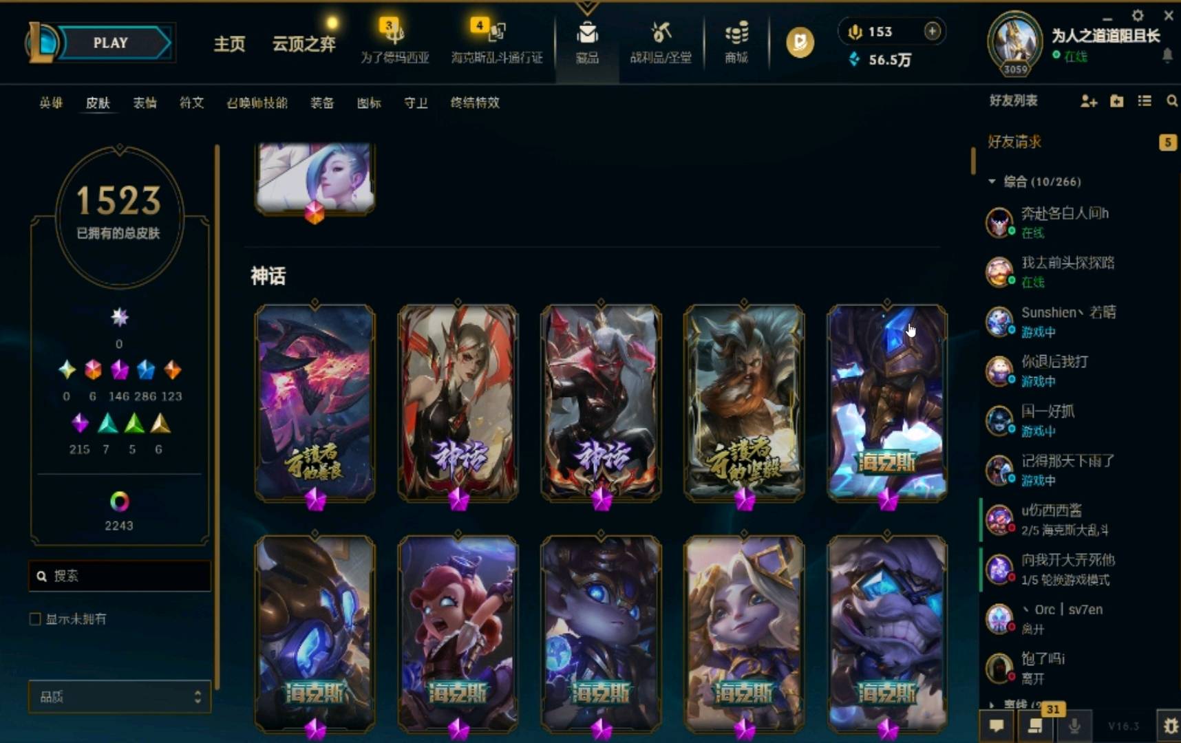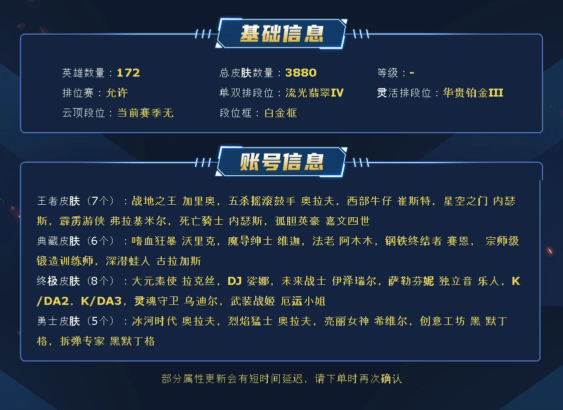 联盟五区 可排位 4000P 3000+等级 皮肤更新中龙的传人 银白天使 全年限 基地爆炸特效
