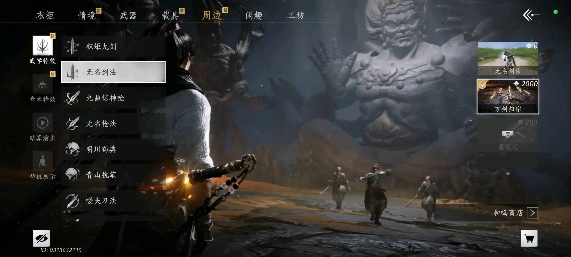 97级,解锁大轻功,所有地图都开了,拥有一套蜀戏春时装,武学特效万剑归宗和龙战玄黄,飞毛腿