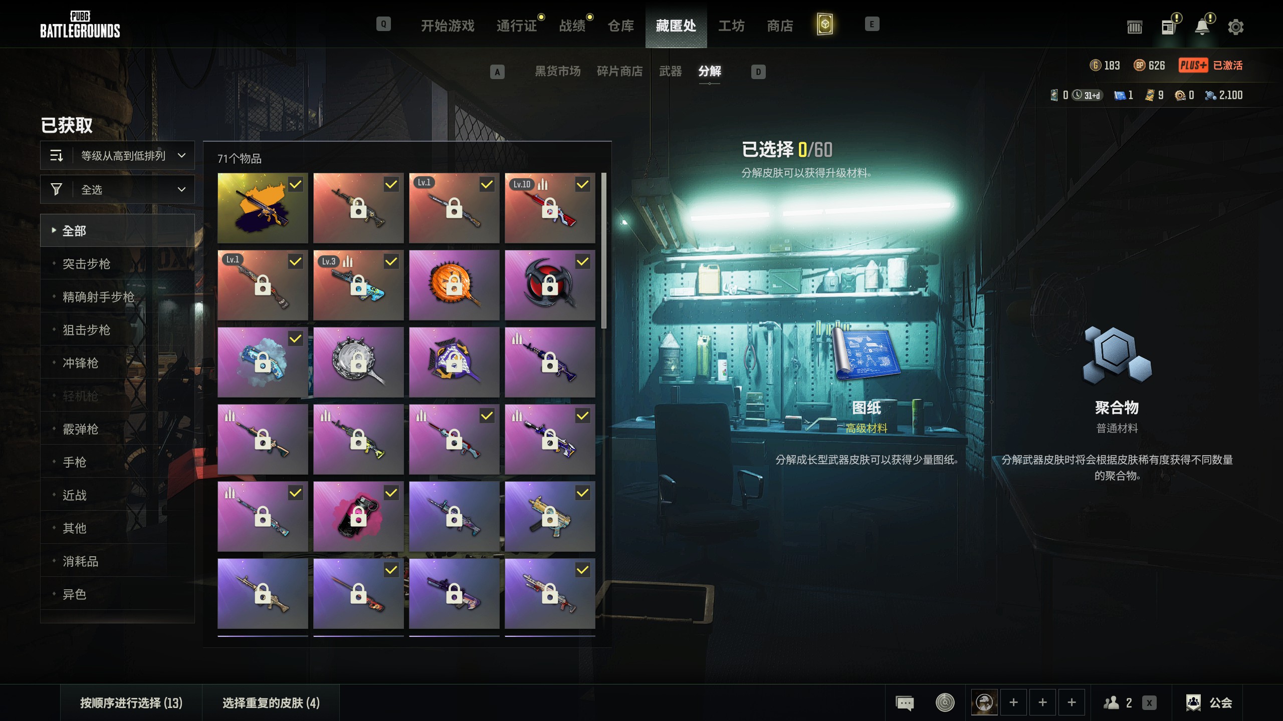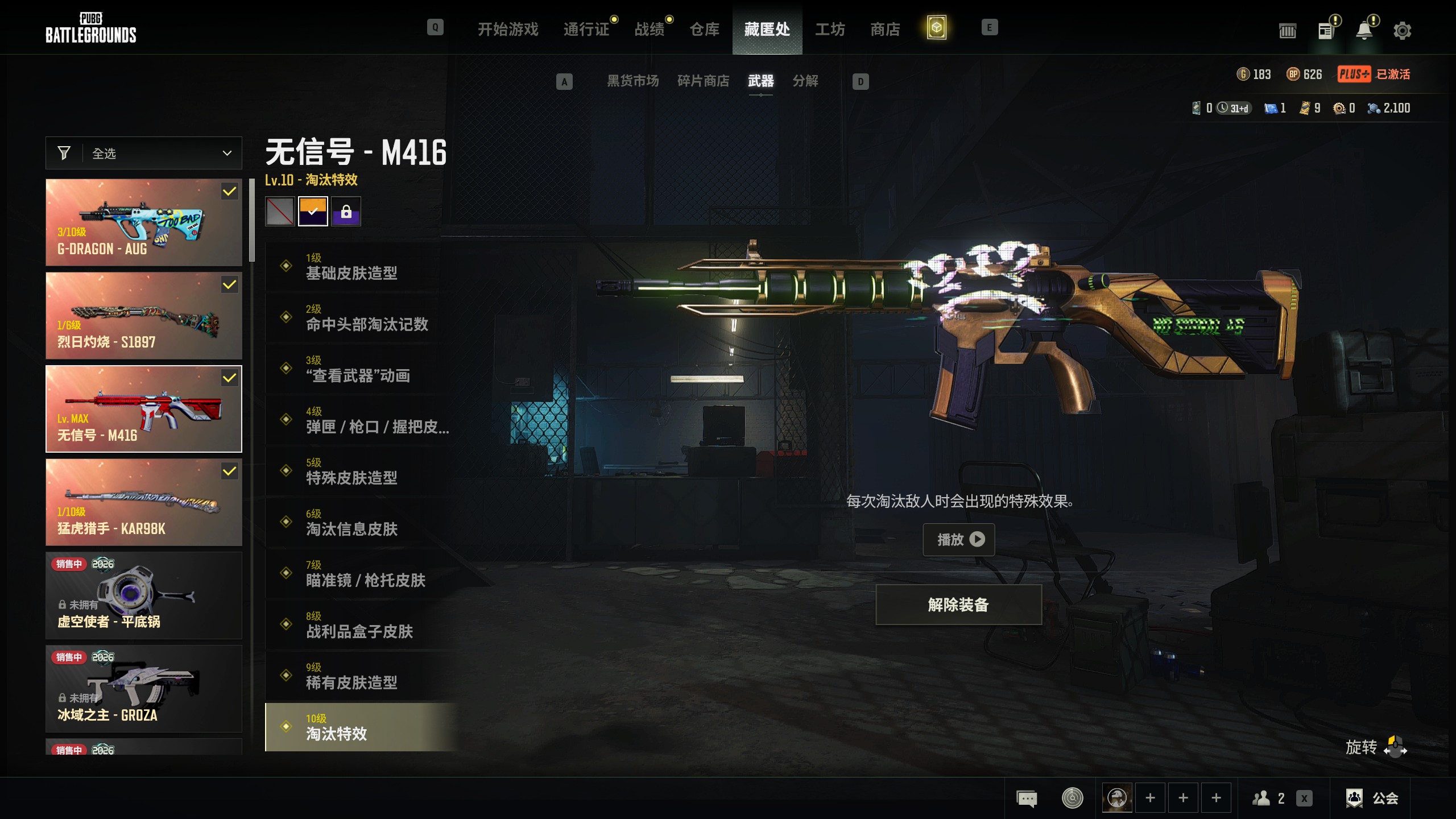 2级112233✅翰娜✅满级异色无信号M416✅3级权志龙AUG✅猛虎98K✅豪华布加迪✅蓝枪粉烟✅