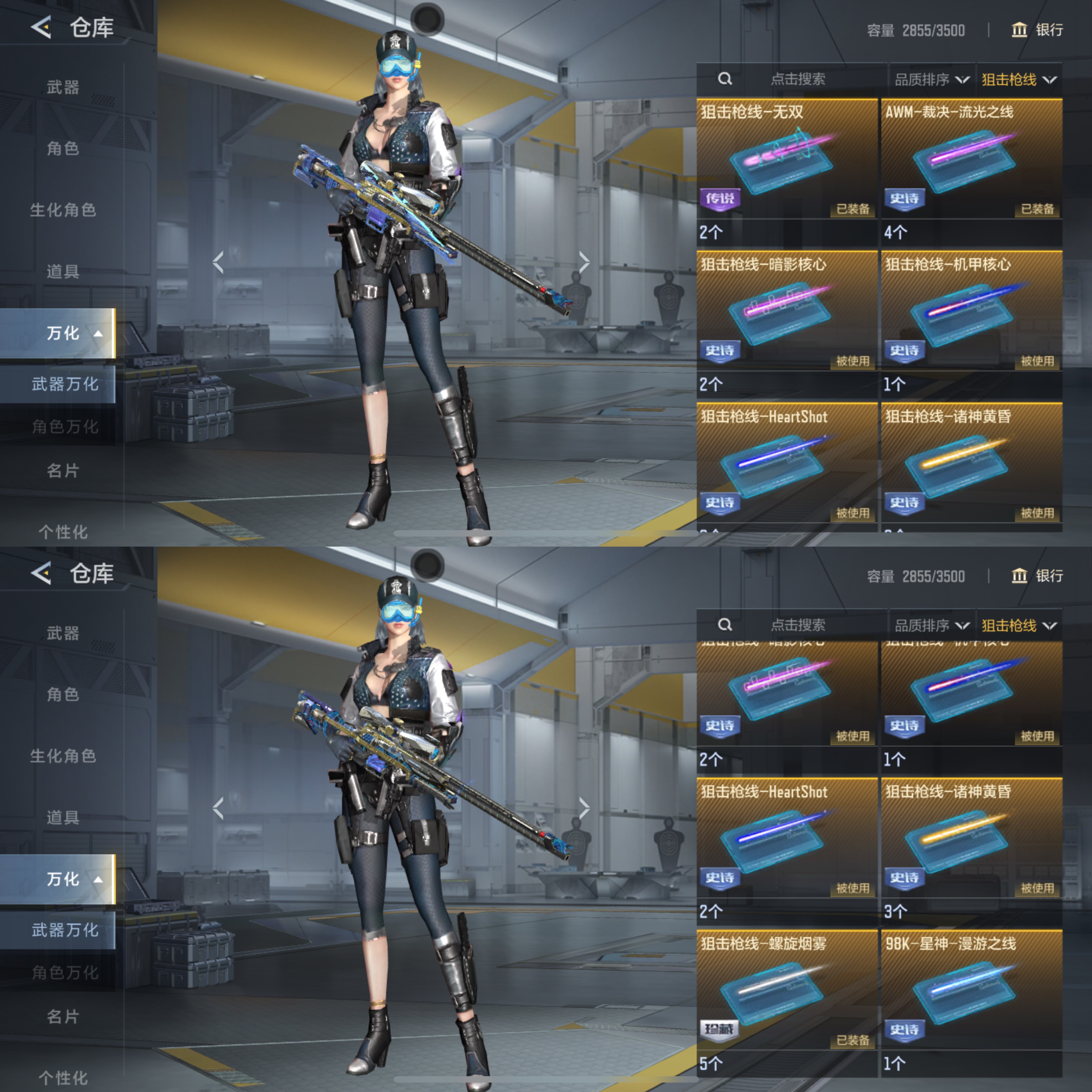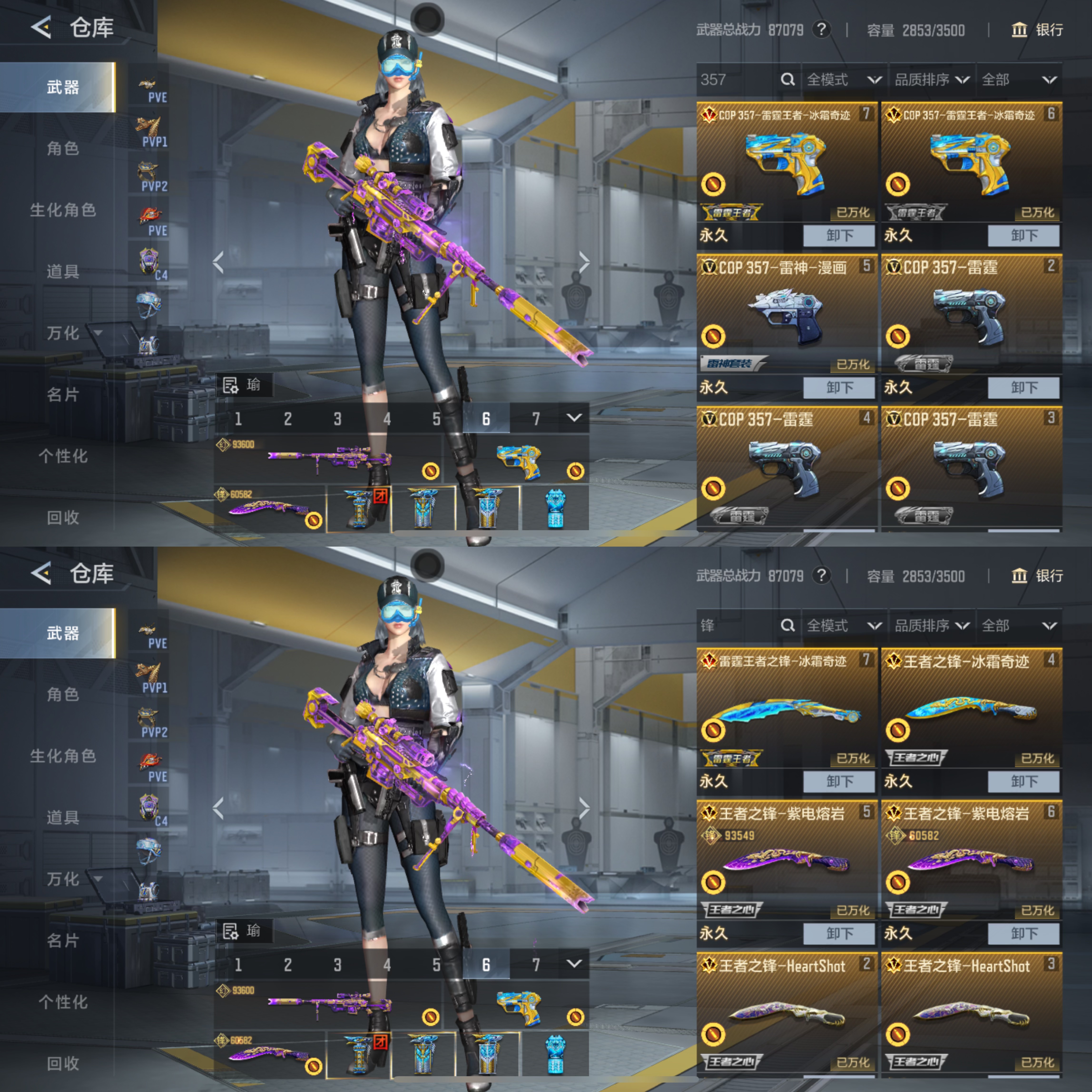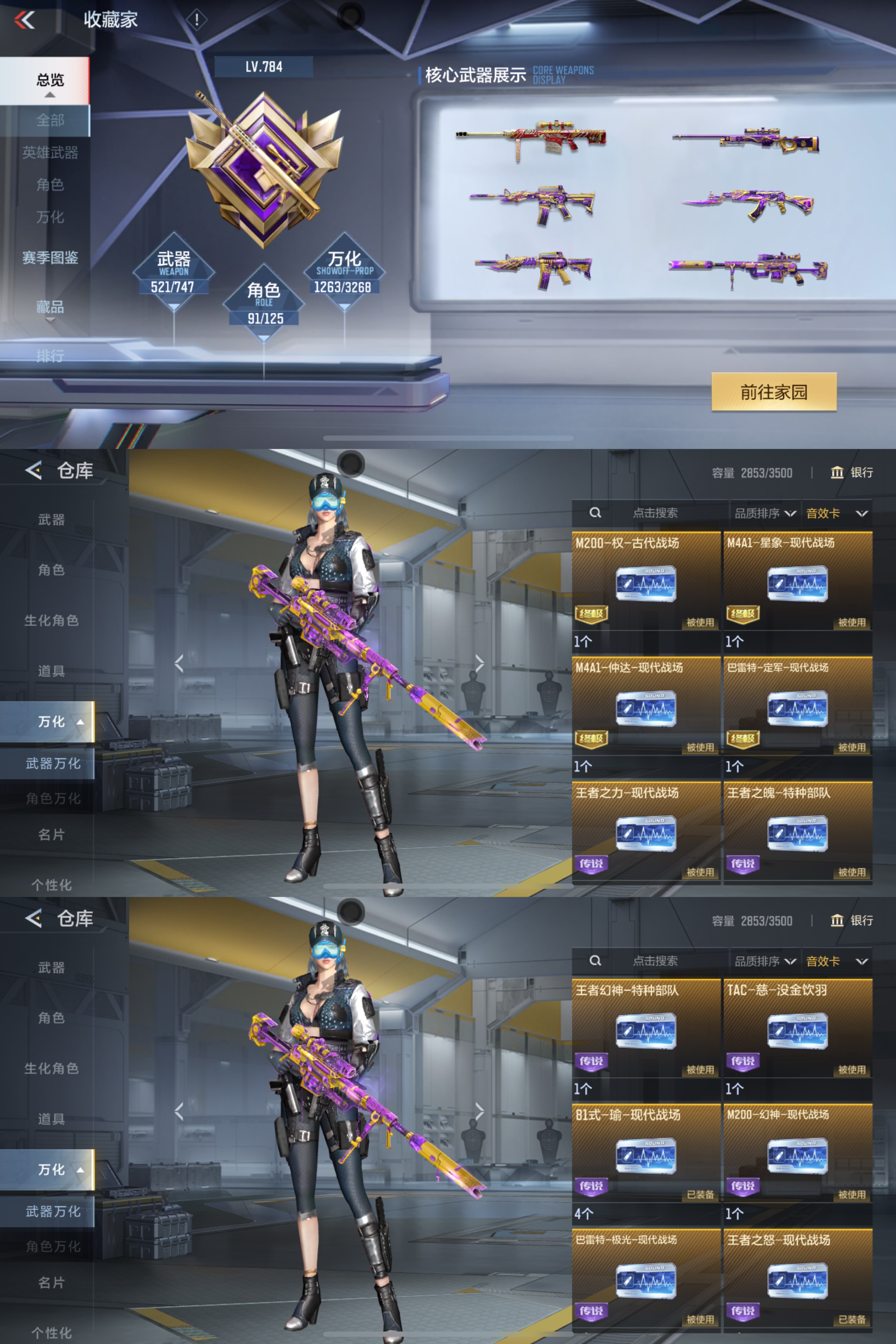 巅峰皮极品v10,七锋七翼王者零,王怒巅峰皮,职排巅峰顶配装备。高收藏等级784级。枪械万化,武器皮肤应有尽有,东西太多