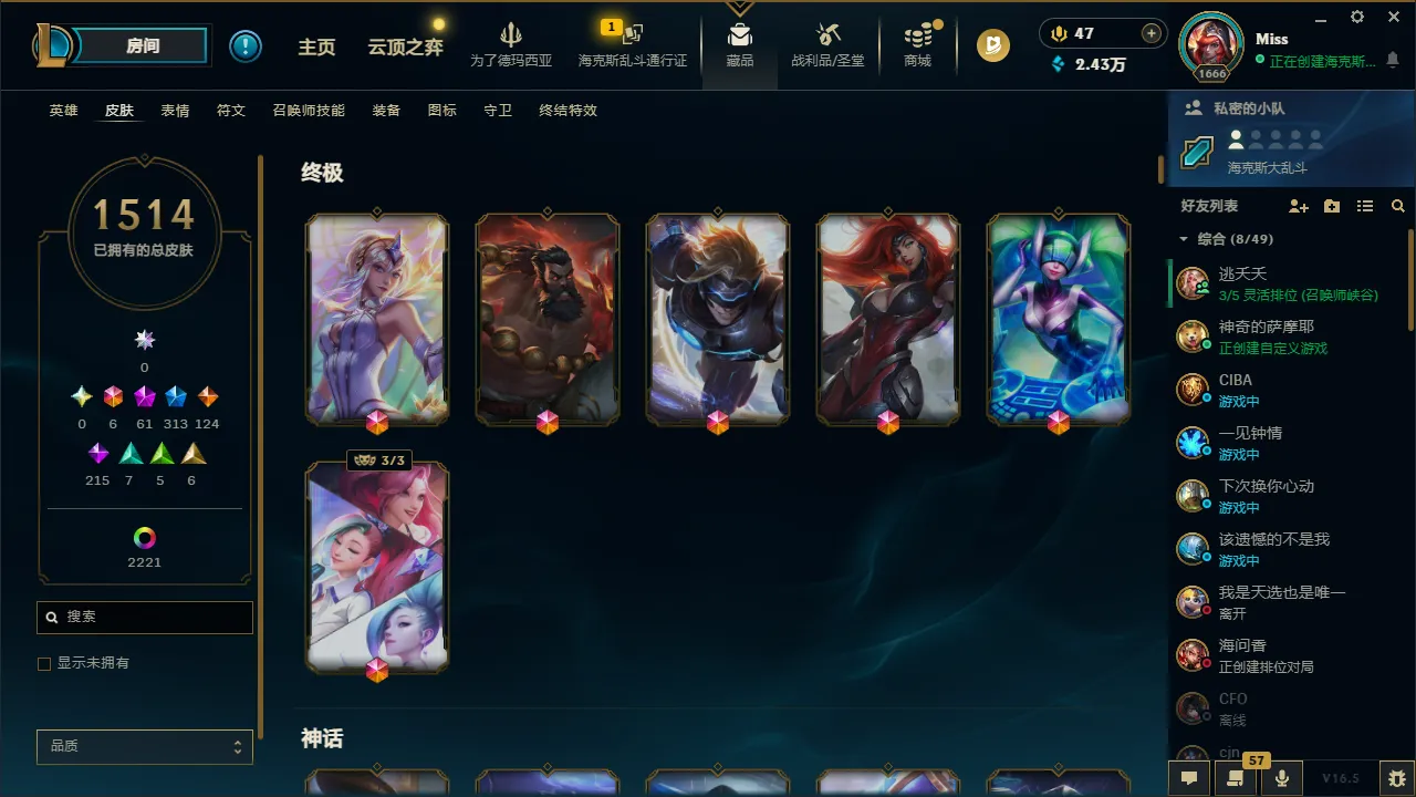 黑色玫瑰3700皮丨1514原皮丨2252炫彩丨313限定丨75臻彩丨61神话