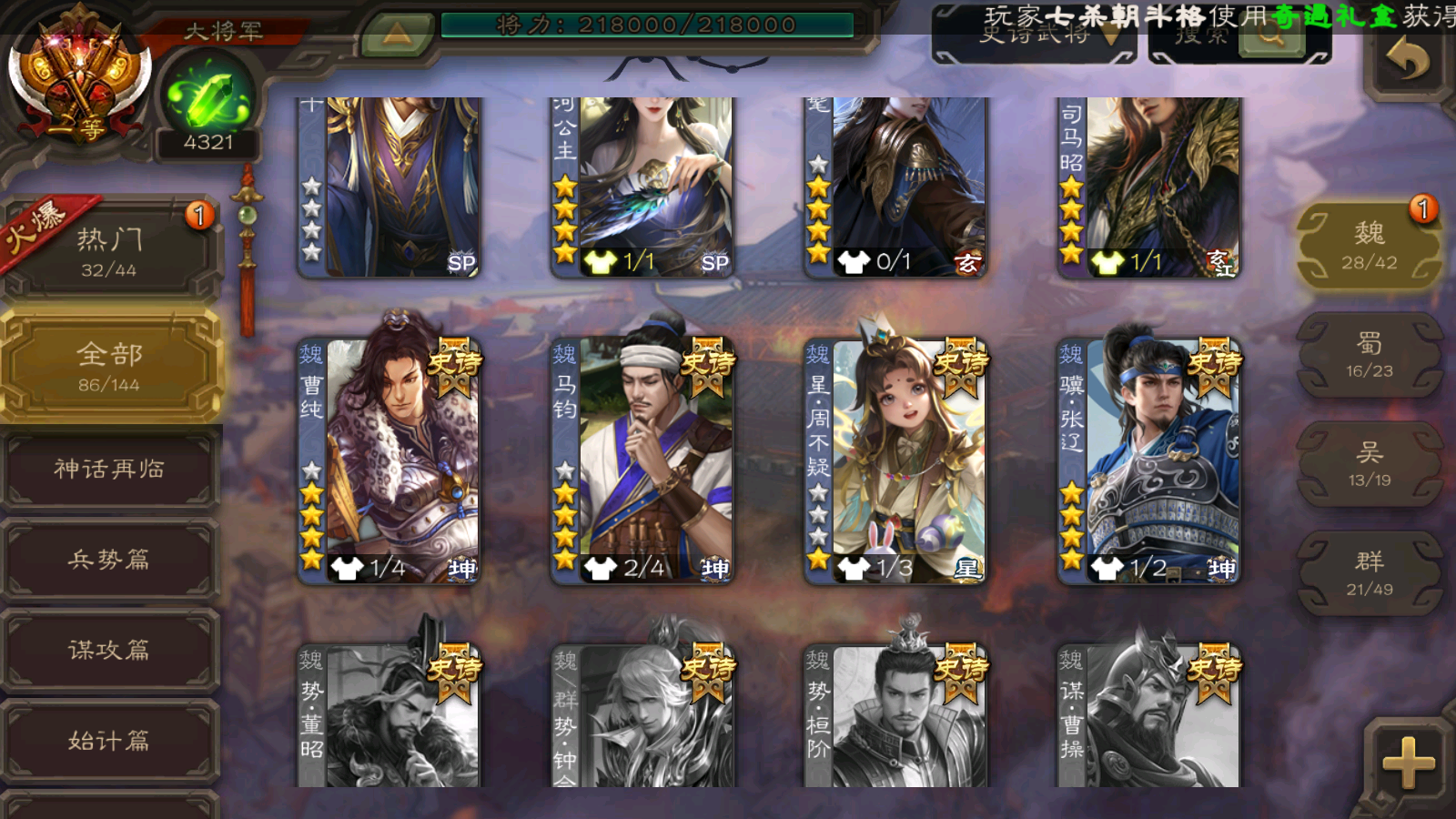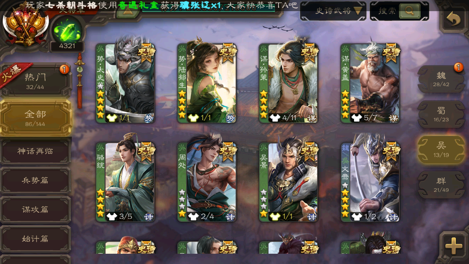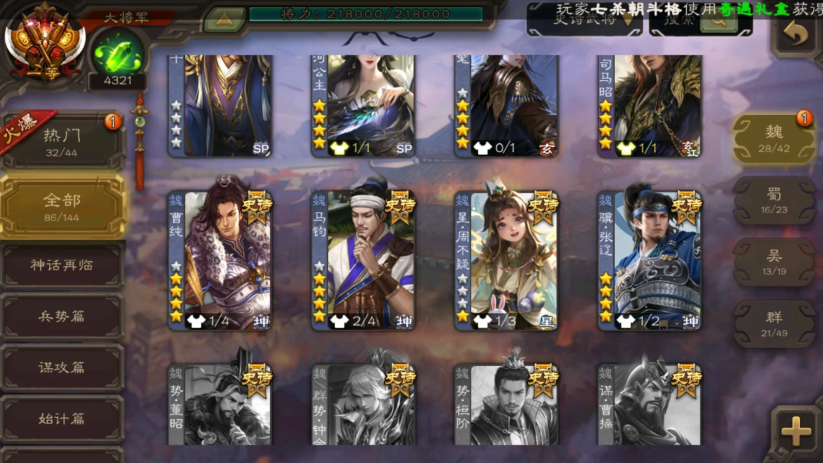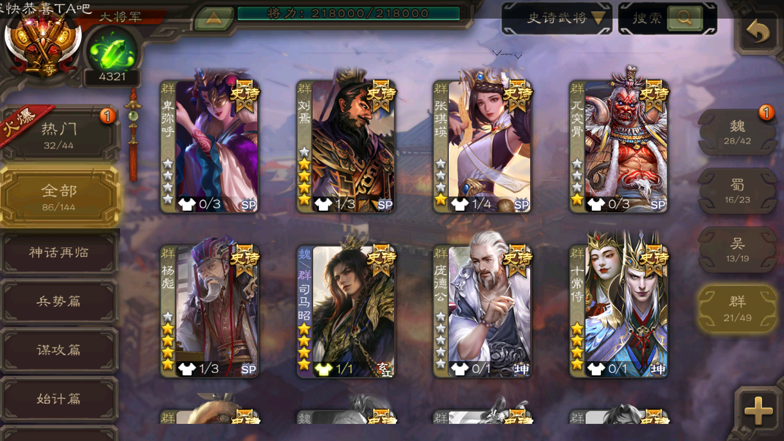 86/史诗武将数量