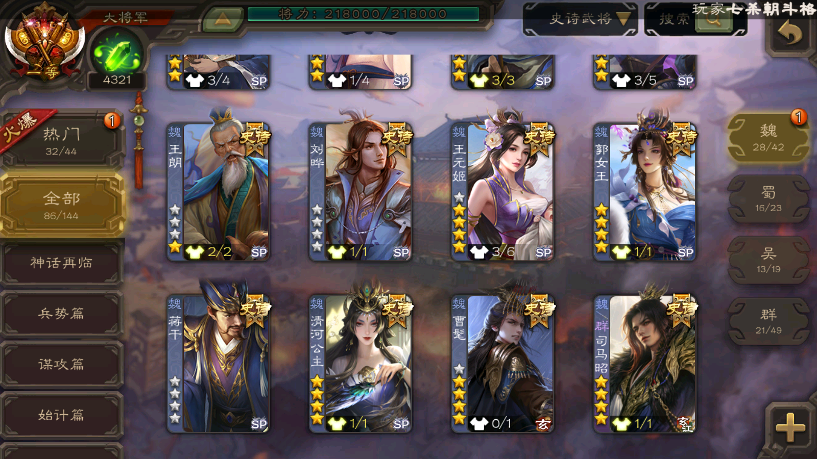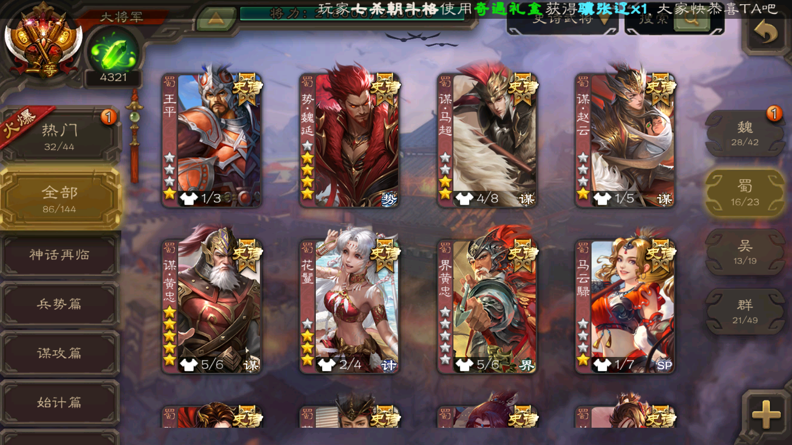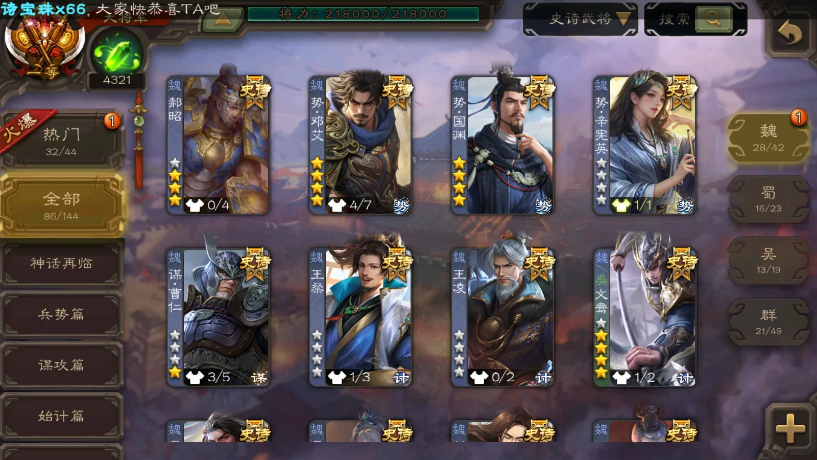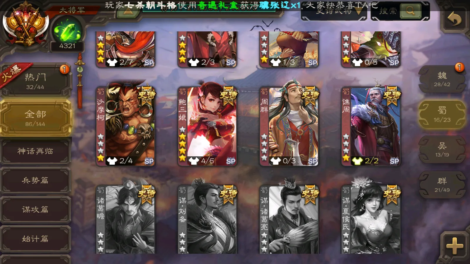 86/史诗武将数量