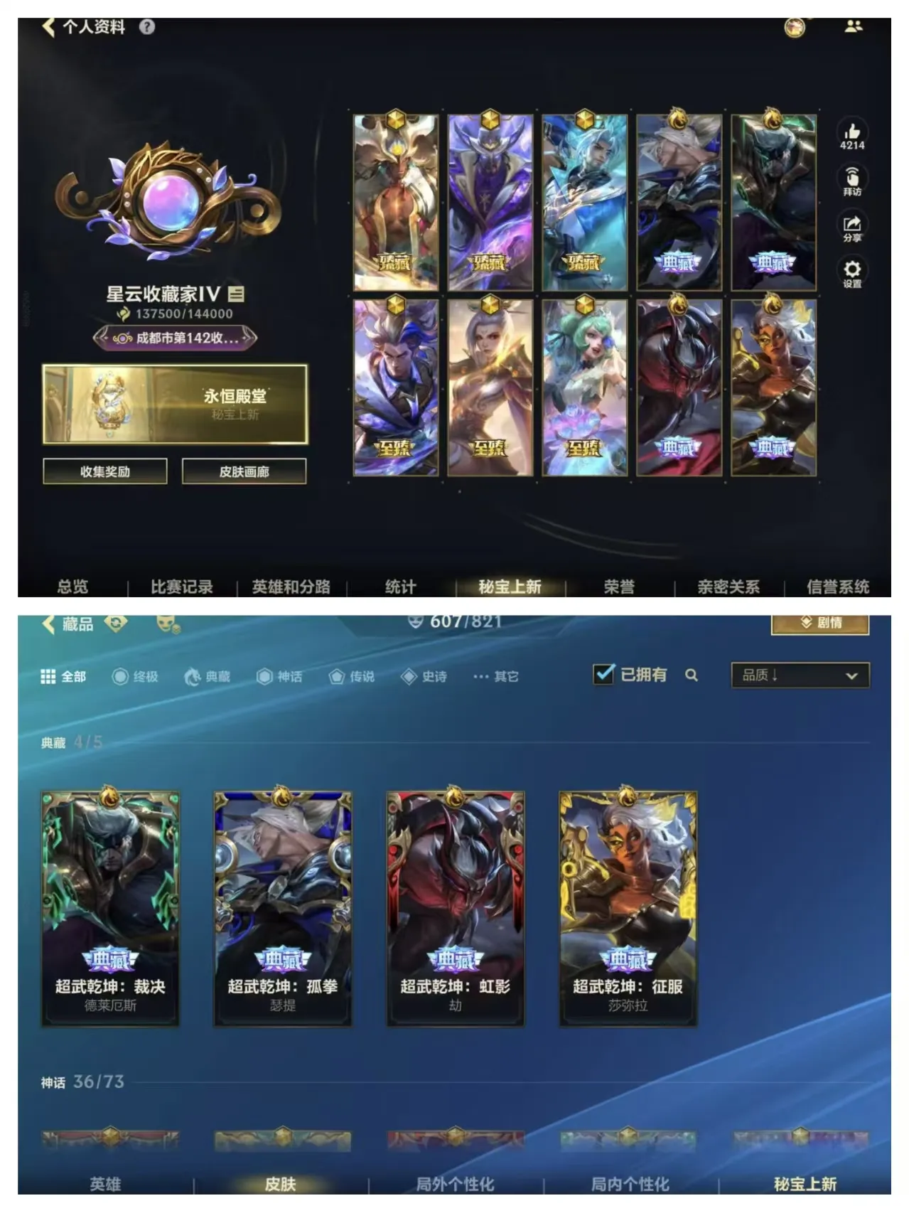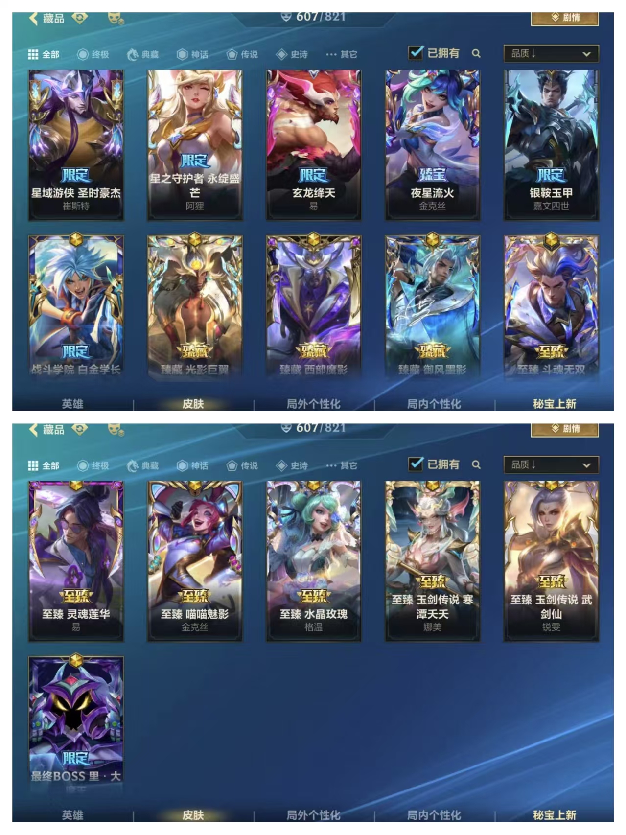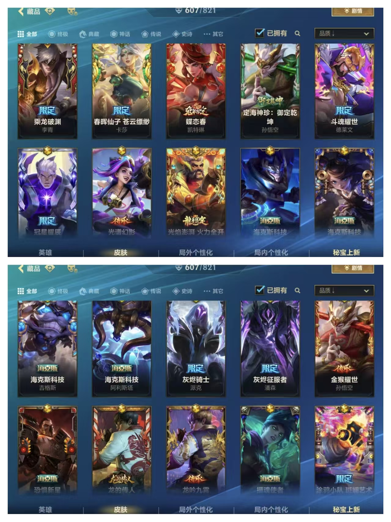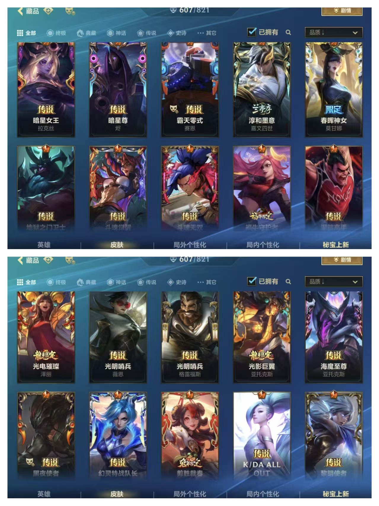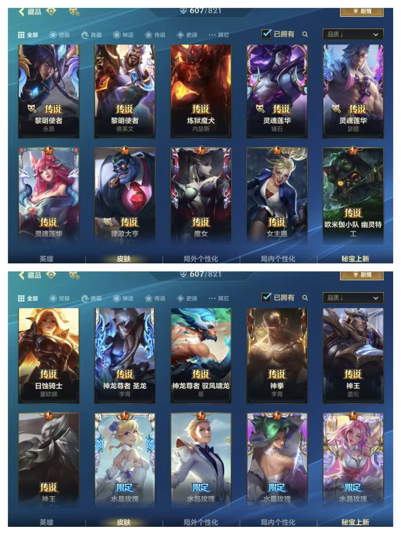 【苹果】 【魂】607皮翡翠段可排位✨四典藏超武乾坤✅黑白龙回城✨金绿猴✅臻藏亚索剑魔卢锡安等✨挂机拉黑