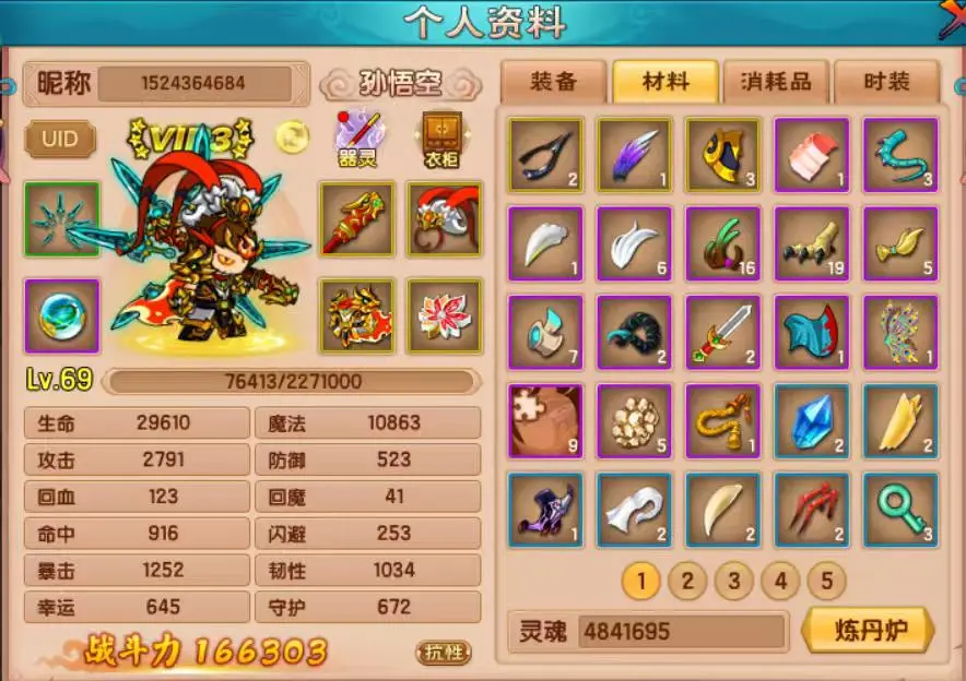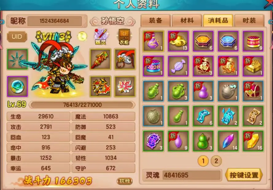 【安卓】 4399造梦西游5 6存档V3账号 孙悟空69级16万战力 装备全传说有剑之翼,灵宠三星打入北极天宫