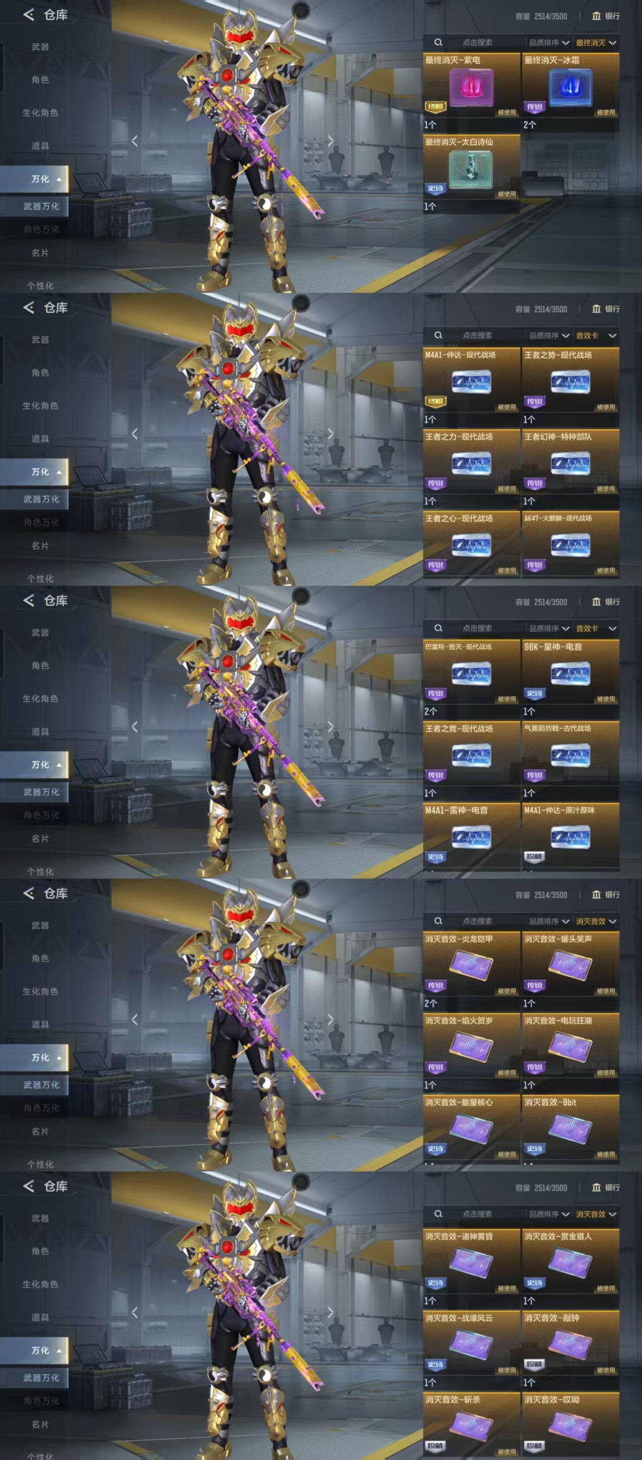步枪: 王者蔷薇✨雷霆王者✨燃竞王圣✨王翎✨王竞✨王势✨星象璀璨星辰✨仲达烽火连城✨奉先无双✨七色葫芦✨盖✨游骑兵寒霜快手