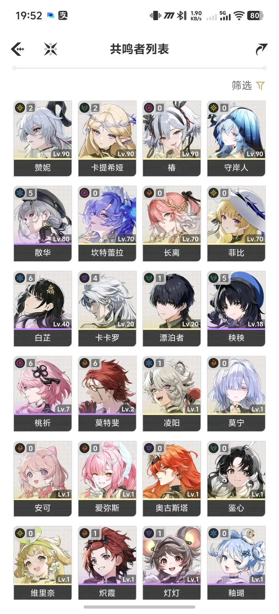 必练核心全齐:2命赞妮+2命卡提希娅+0命椿/守岸人,5命散华/秧秧,4命卡卡罗,主流C位全满命/高命!