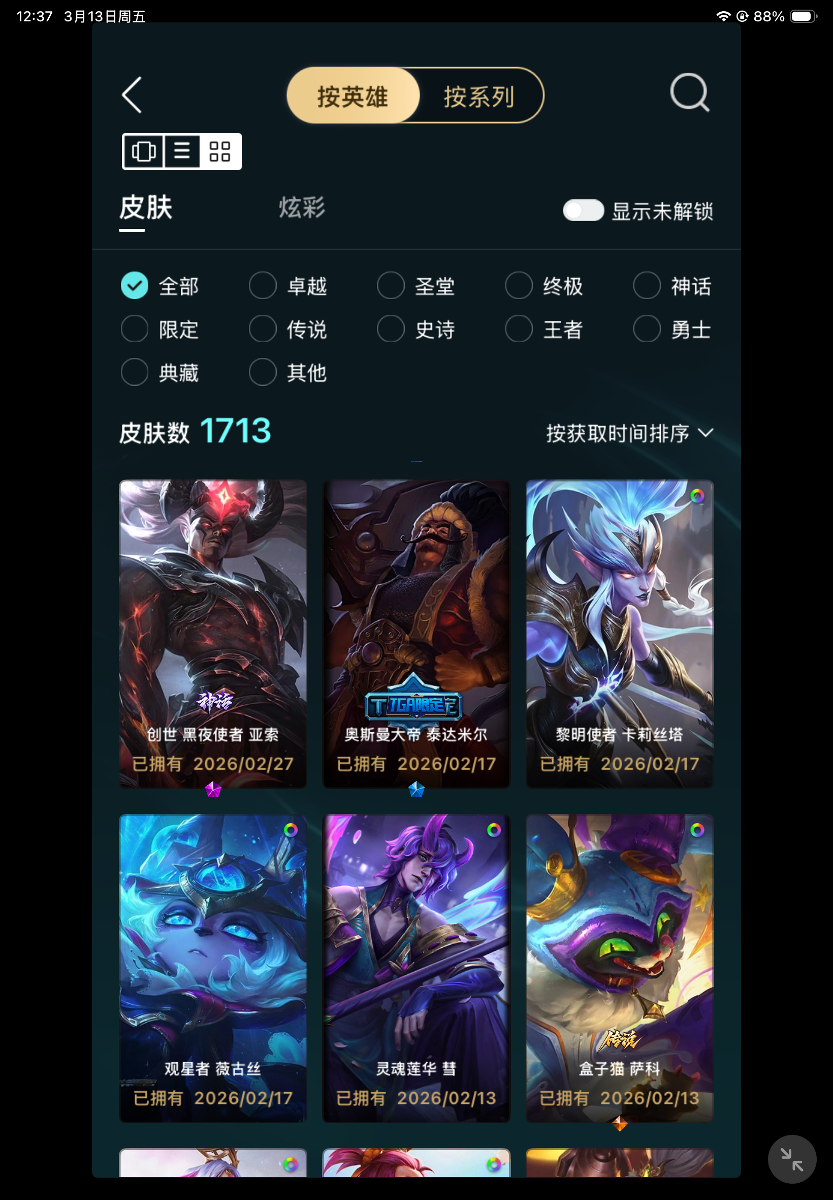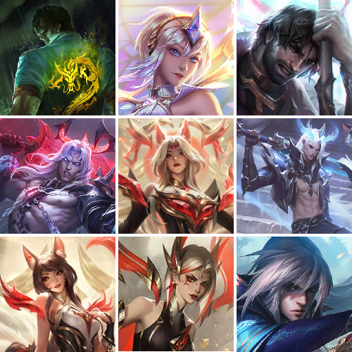 1711皮|3炫龙瞎|神话幻想黑夜亚索|神话幻想龙王|冰弹酒桶|联盟不朽阿狸|冥王佛耶戈|圣天龙李青