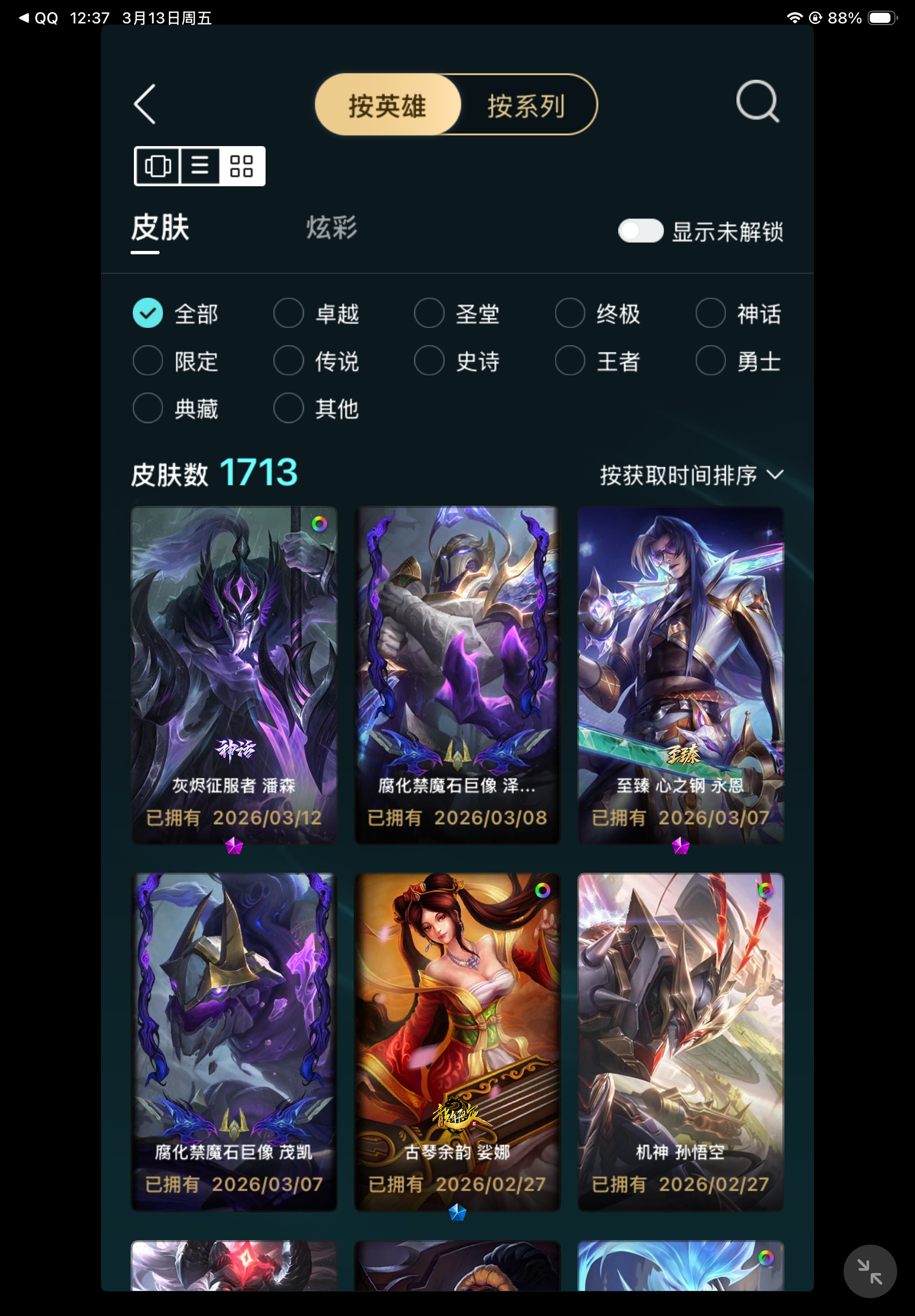 - 臻彩皮肤数量: 107