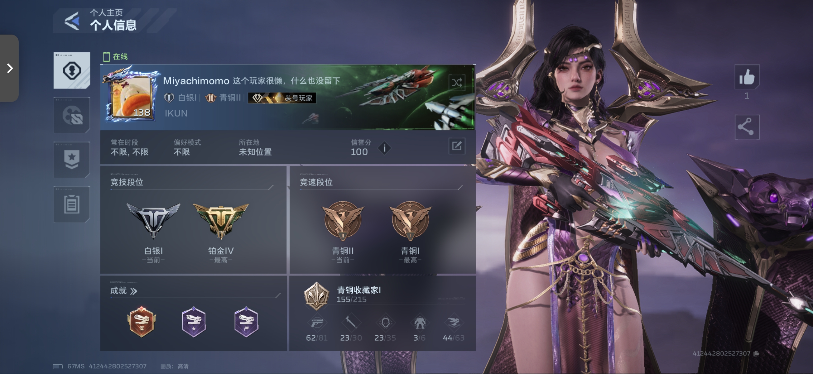 精绝女王、金战云 、除副本以外角色齐全 !稀有称号(头号玩家)插件全齐副本几乎全毕业塔防毕业皮肤齐全