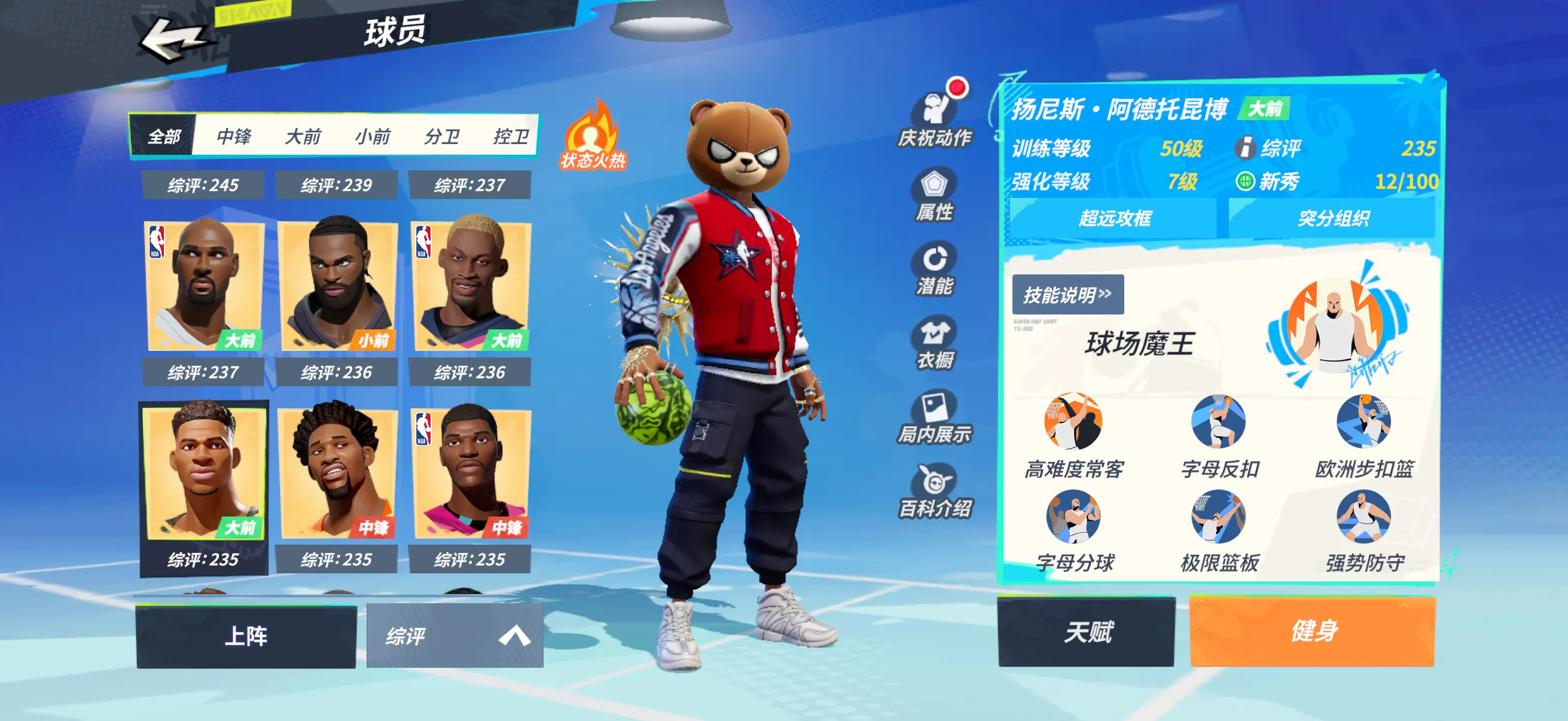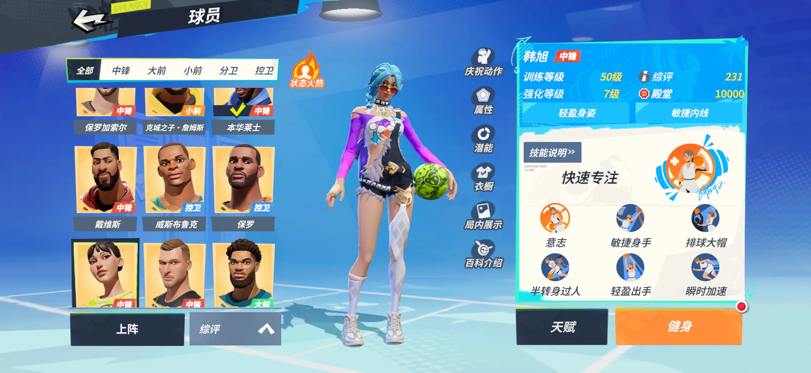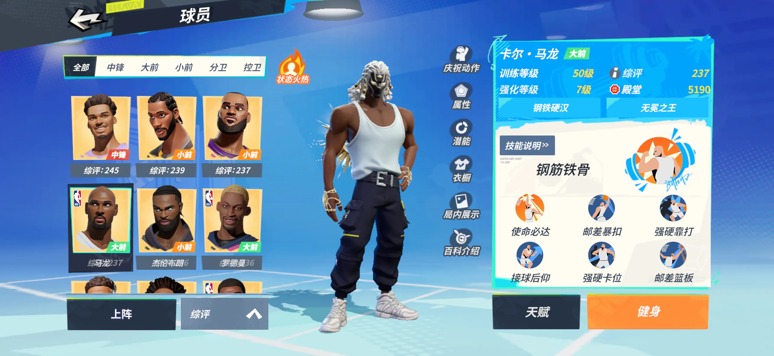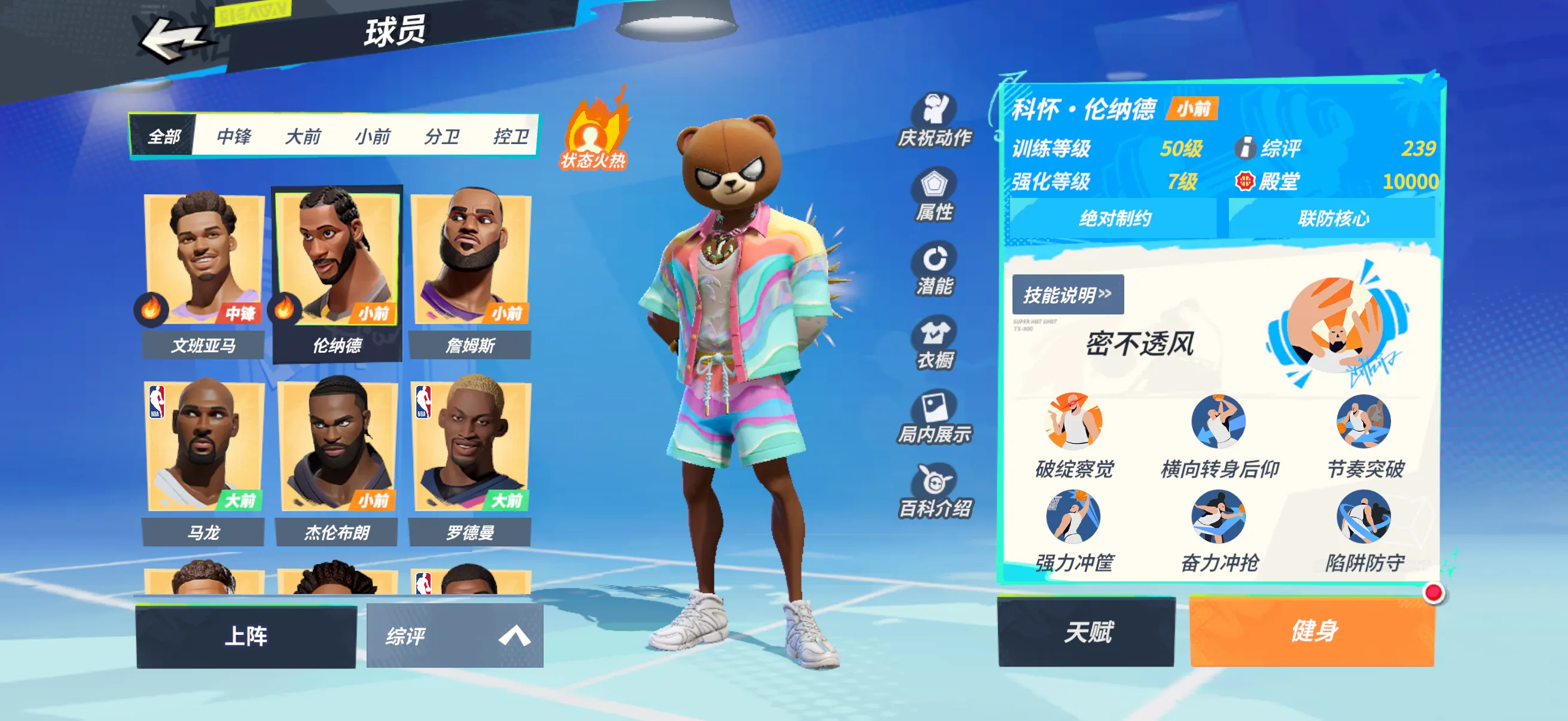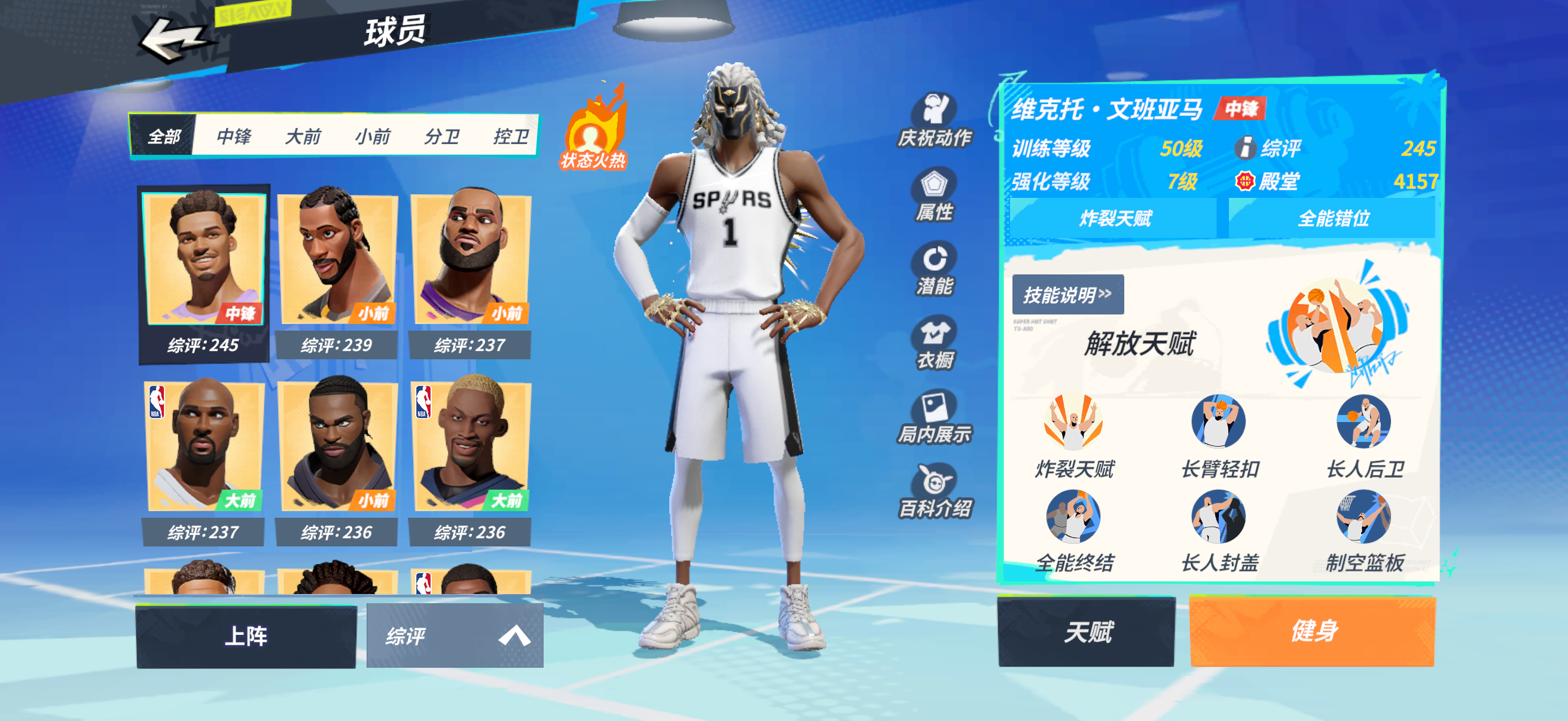 7文班专属7字母7大本7罗德曼7戴维斯7韩旭7小卡7马龙7詹姆斯7克詹7布朗7威少7保罗7加索尔7恩比德7大梦7波尔津吉斯4唐斯天赋技能全满(保罗差两个花式)