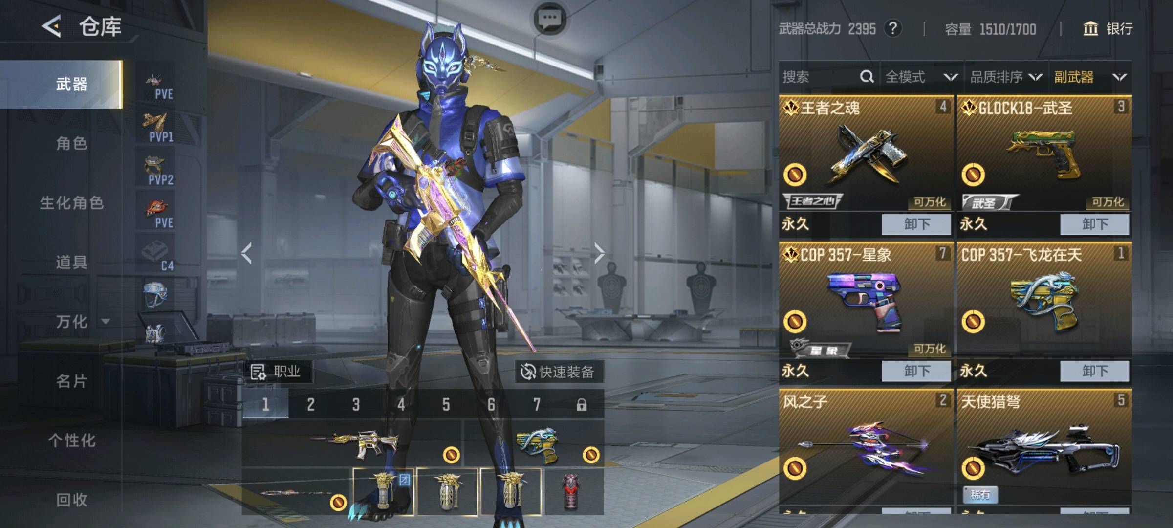 v7/300多V/16王者/王魄女团皮/COP星象/仲达/妙才/三国武器众多/可排位/游骑兵/金角巨兽/m4九尾狐/雷暴狙/4把COP