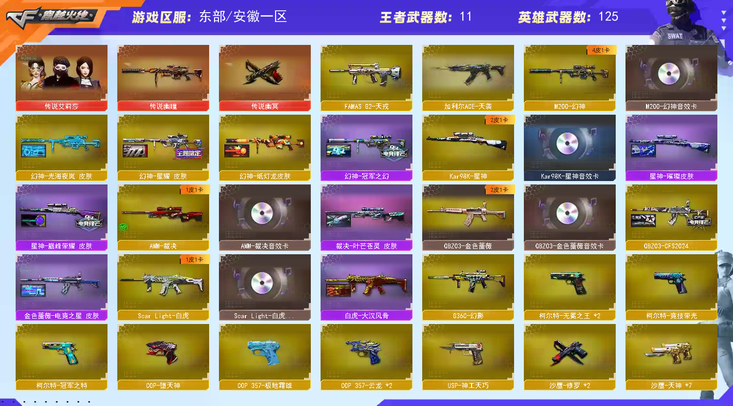 【允许排位】幻神光海夜岚/传说幽瞳/幻卡星卡裁决卡/传说艾莉莎/加里尔天袭/G36C幻影/满配副武器/奇幻泡泡象
