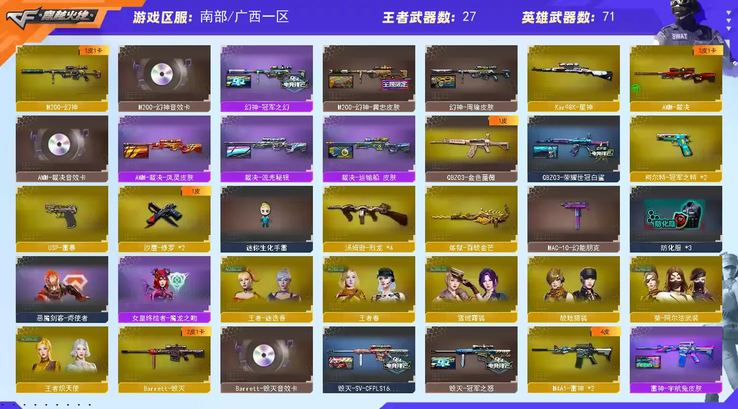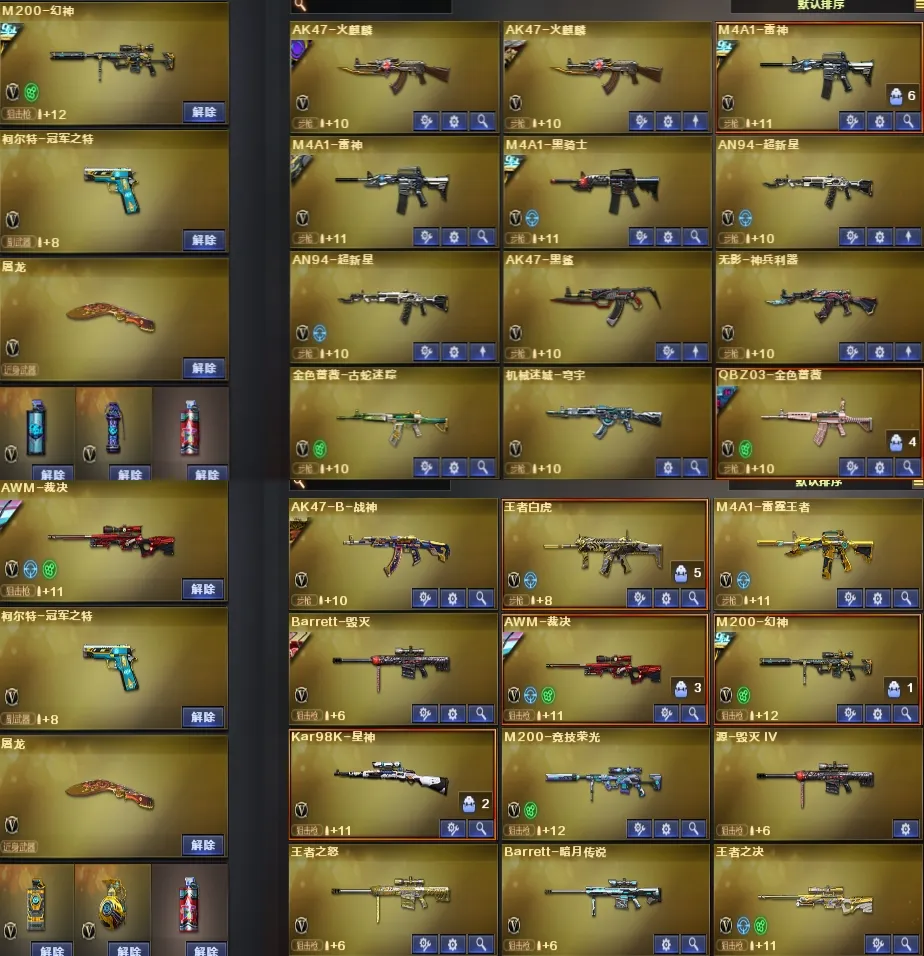 【不允许排位】幻神三件套,裁决三件套流光,高质量手枪,星神王者白虎,毁灭三件套,四防满雷,禁止外挂