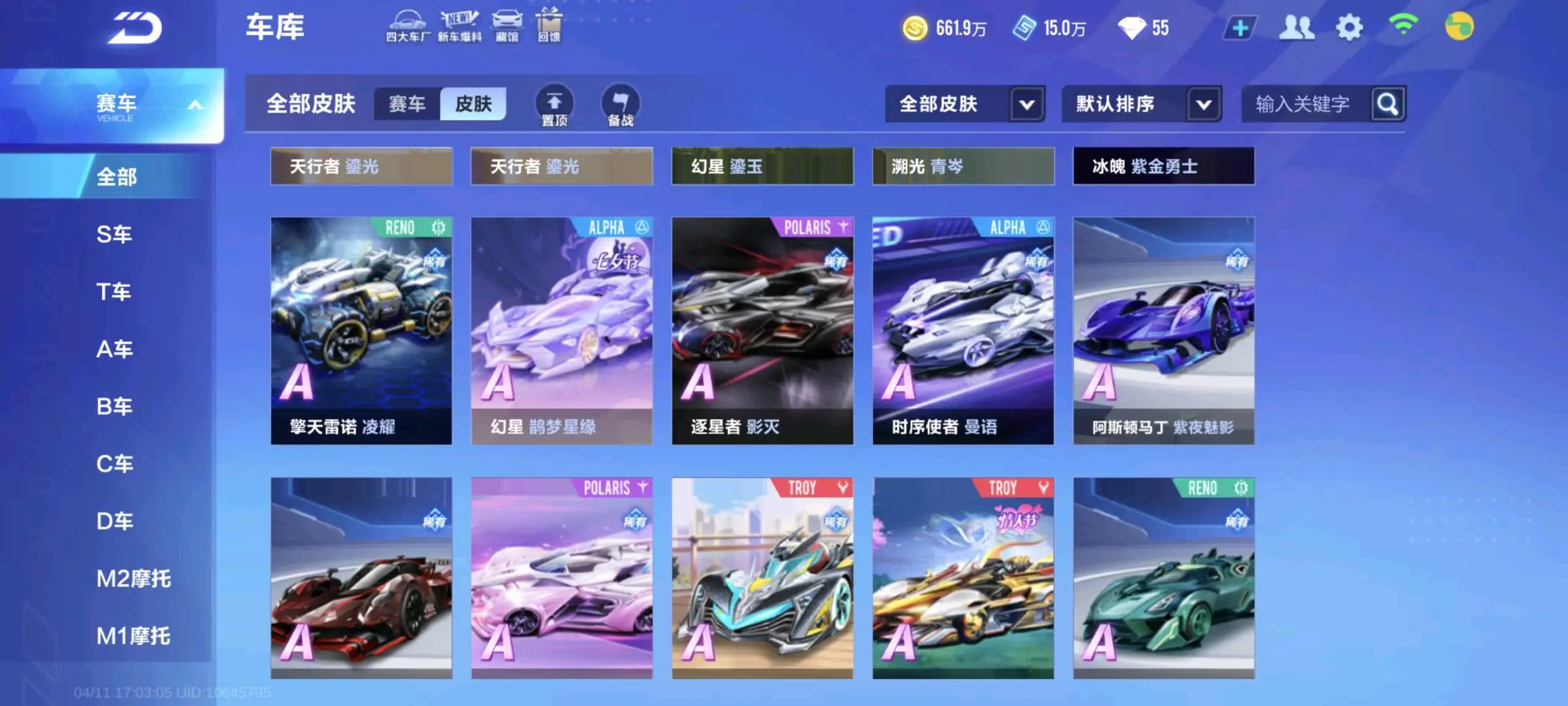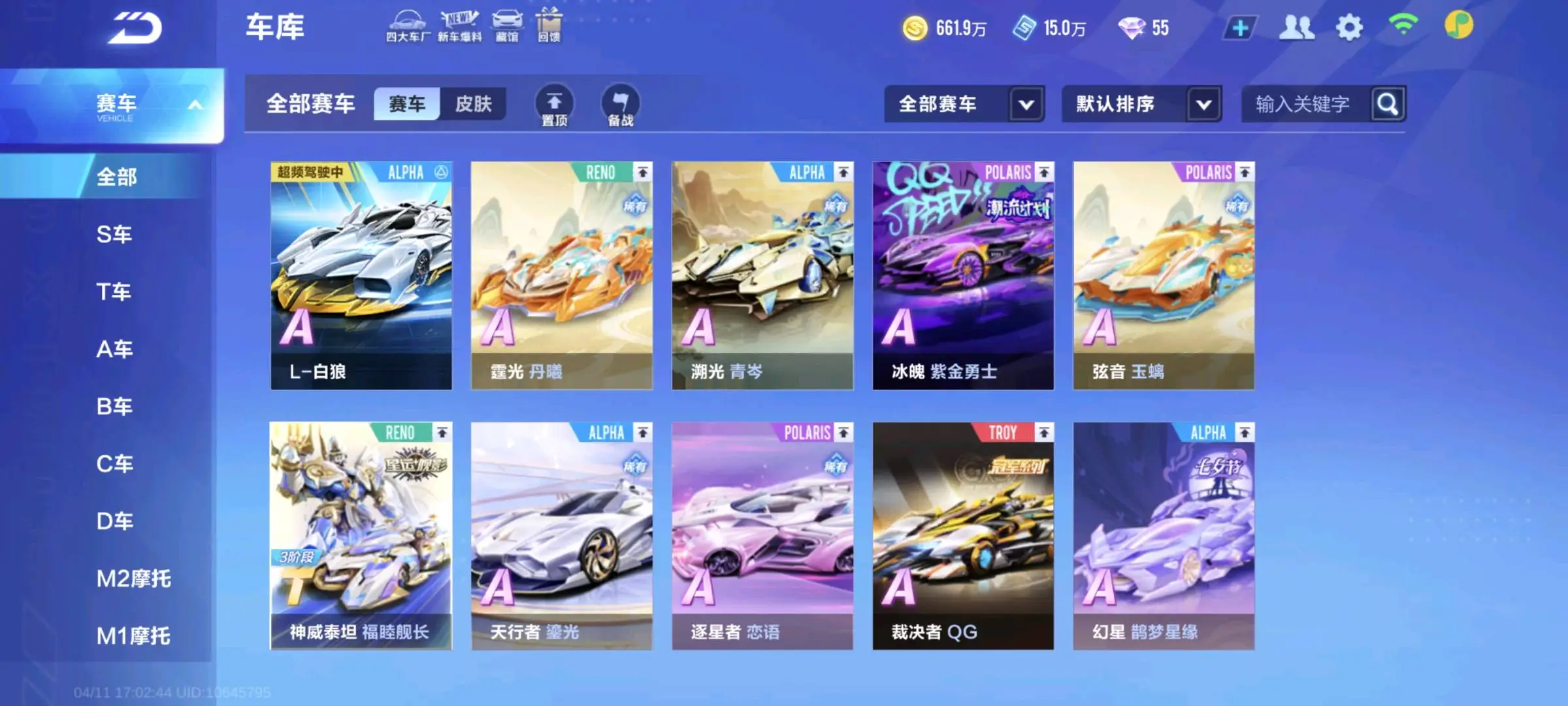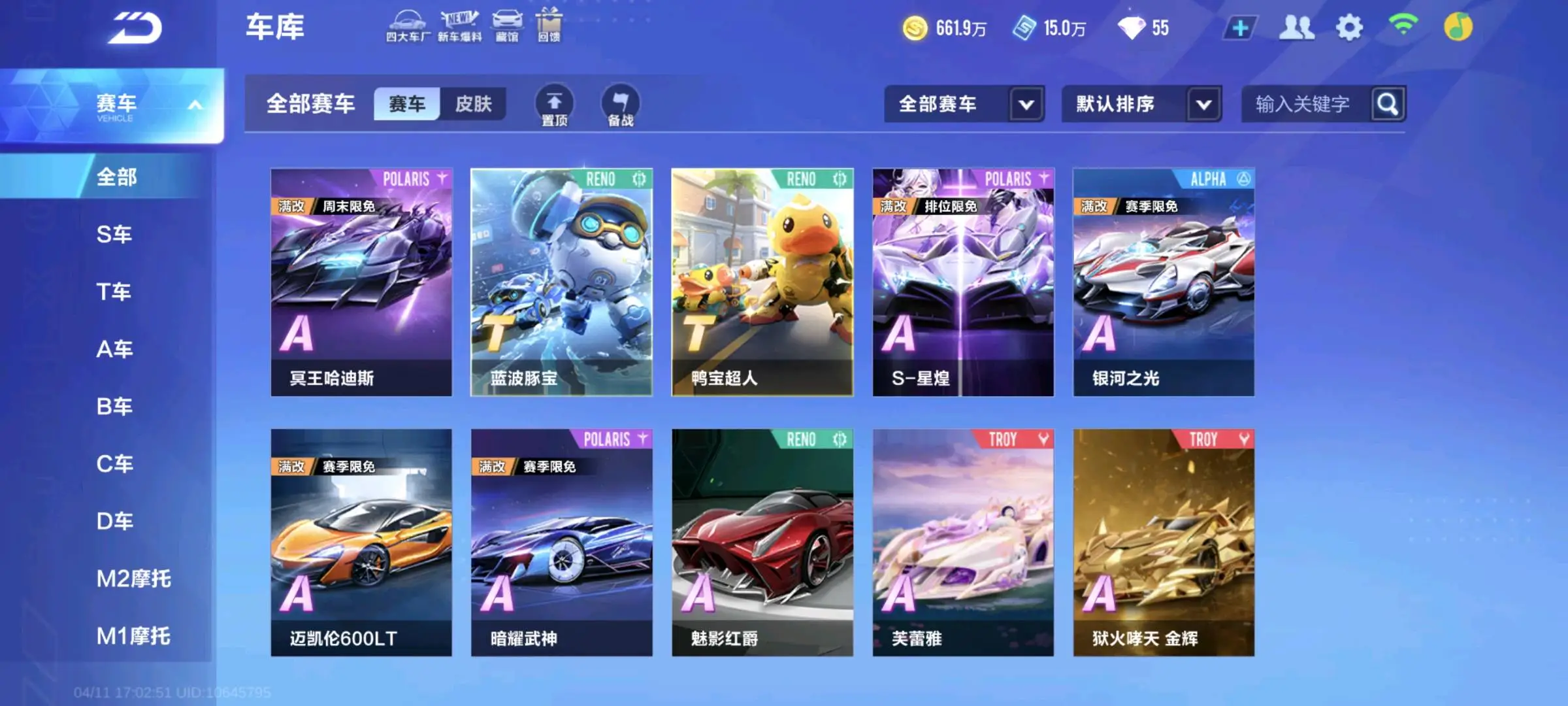 【安卓】 T车有神威泰坦,联赛车有 霆光,幻星,溯光,冰魄,弦音,天行,裁决,逐星,宠物有 玉玺神虎,雀焰女王