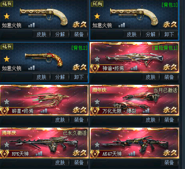 双花束3火铳,竞技大头变异,变异神域飞梭撼天墨韵天枢都满配,大头风神玄天,还有绝版夜刃皮肤,