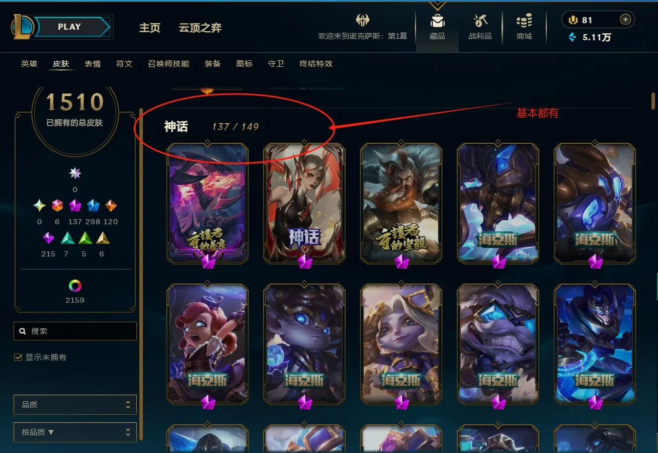 - 神话皮肤数量: 148