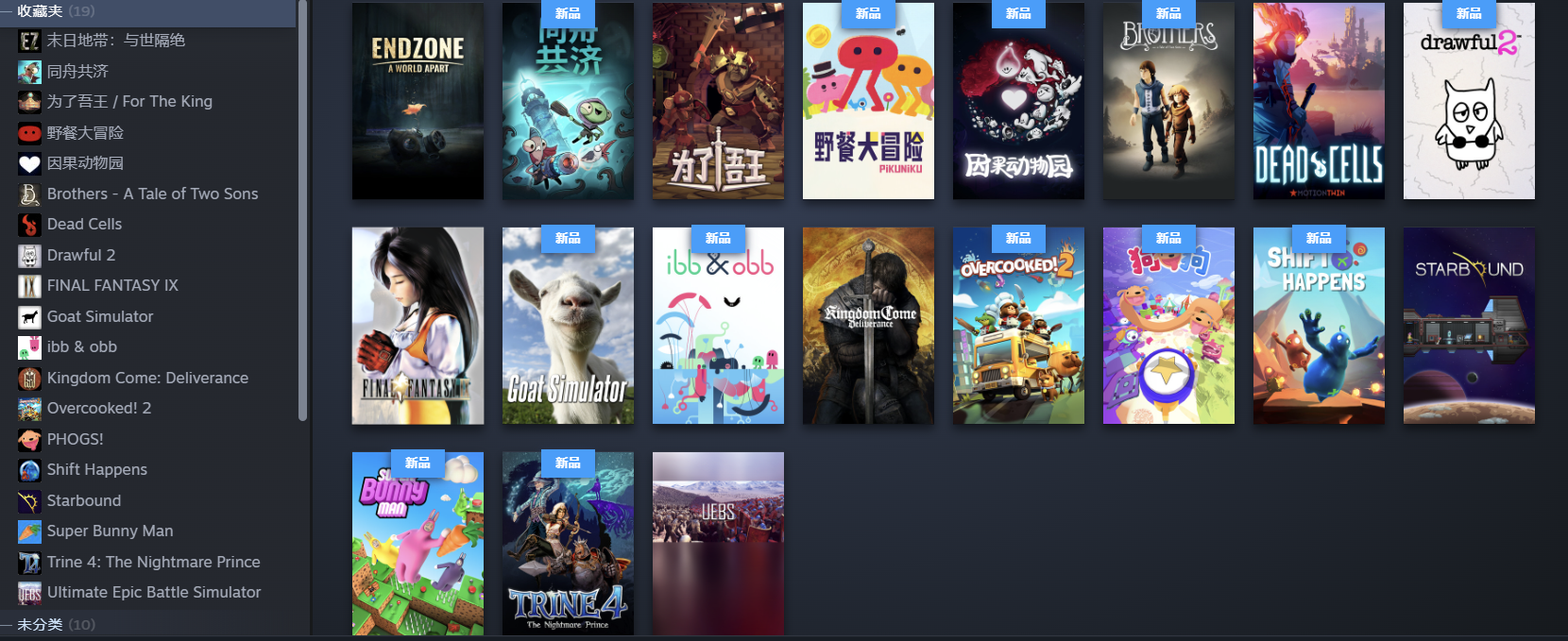 小小梦魇3、人类一败涂地、沙石镇时光、PEAK、大富翁11、模拟山羊1、同舟共济(Ship of Fools)、你画我猜2(Drawful 2)、因果动物园、胡闹厨房2/分手厨房2、狗狗(PHOGS!)、野餐大冒险、艾波与欧波(ibb & obb)、超级兔子人、三位一体4梦魇王子、兄弟双子传说、移形换位(Shift Happens)、只只大冒险/只知大冒险、双人成行、星界边境 starbound、为了吾王 for the king、死亡细胞 dead cells、史诗战争模拟、末日地带与世隔绝 endzone - a world apart、天国:拯救 Kingdom Come: Deliverance、贪婪之秋 Greedfall、最终幻想9 FINAL FANTASY IX