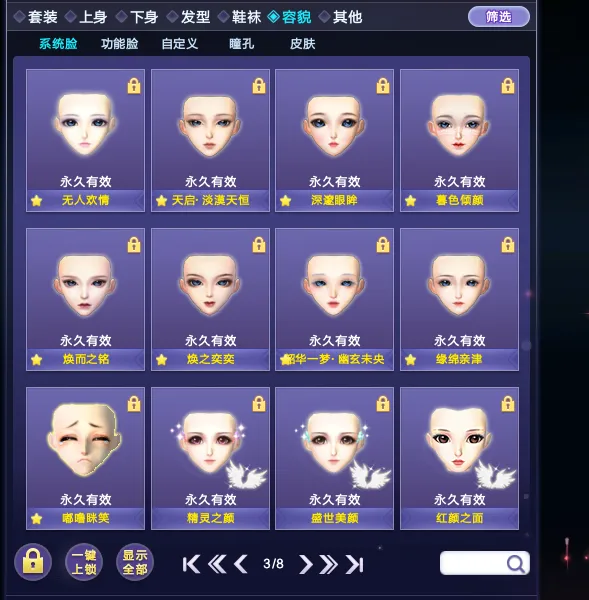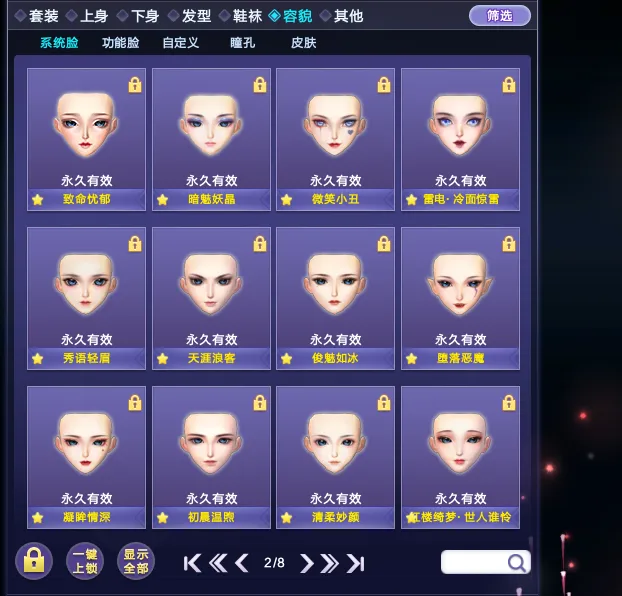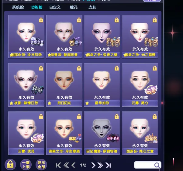 脸多 无白骨 有妖瞳 极光二脸全 套装150+ 主打礼服适合野约 上号请改名