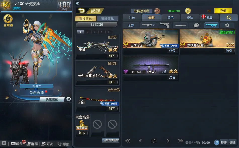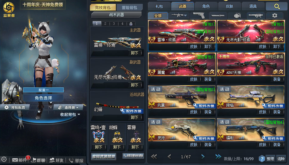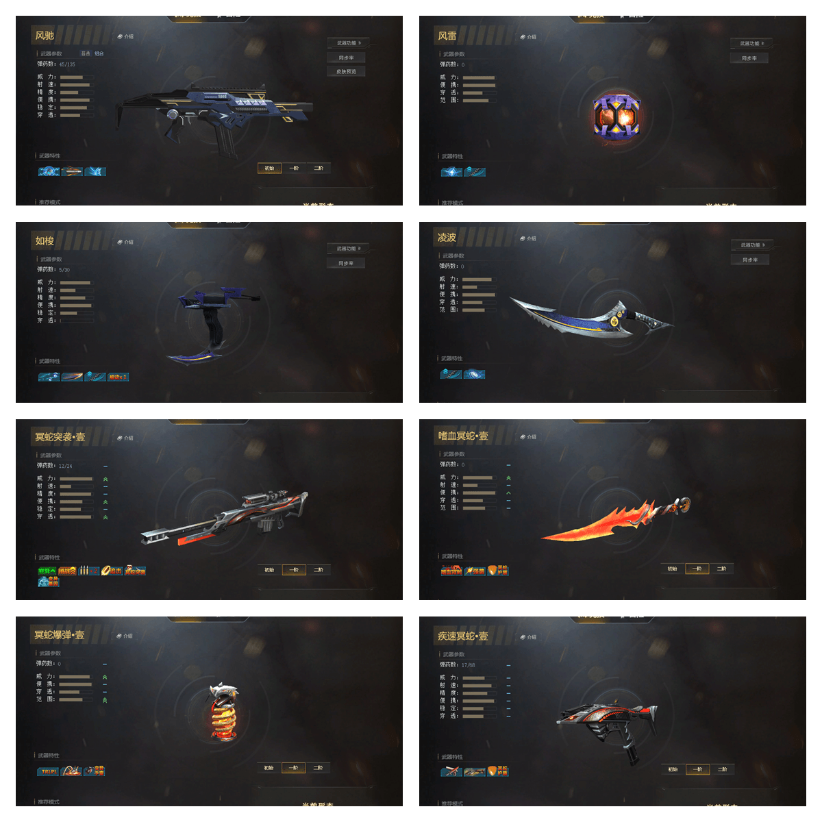 其它武器:【幻锋满配】【镭射满配】【仲裁巨剑满配】【风驰套】【数据魔方贰】【狂暴之握124配】【冥蛇套】