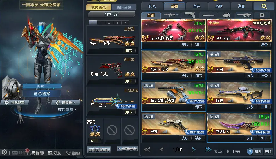 ✨AK天神+终焉✨雷神传承✨幻锋满配✨风暴✨分析器✨灵狩✨霜雪✨天罚之眼✨仲裁巨剑✨戏法✨蛇女✨