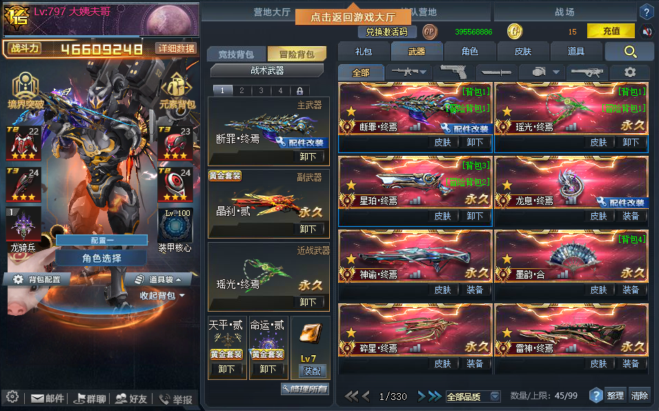 【传说武器】断罪·终焉 瑶光·终焉 星珀·终焉 龙息·终焉 神谕·终焉 墨韵·合 碎星终焉 雷神终焉 SCAR-影魔-黄金国 无尽终焉-次元战争 无尽终焉 无限EX 屠魔 AK主宰 AK天神 RPK主宰
