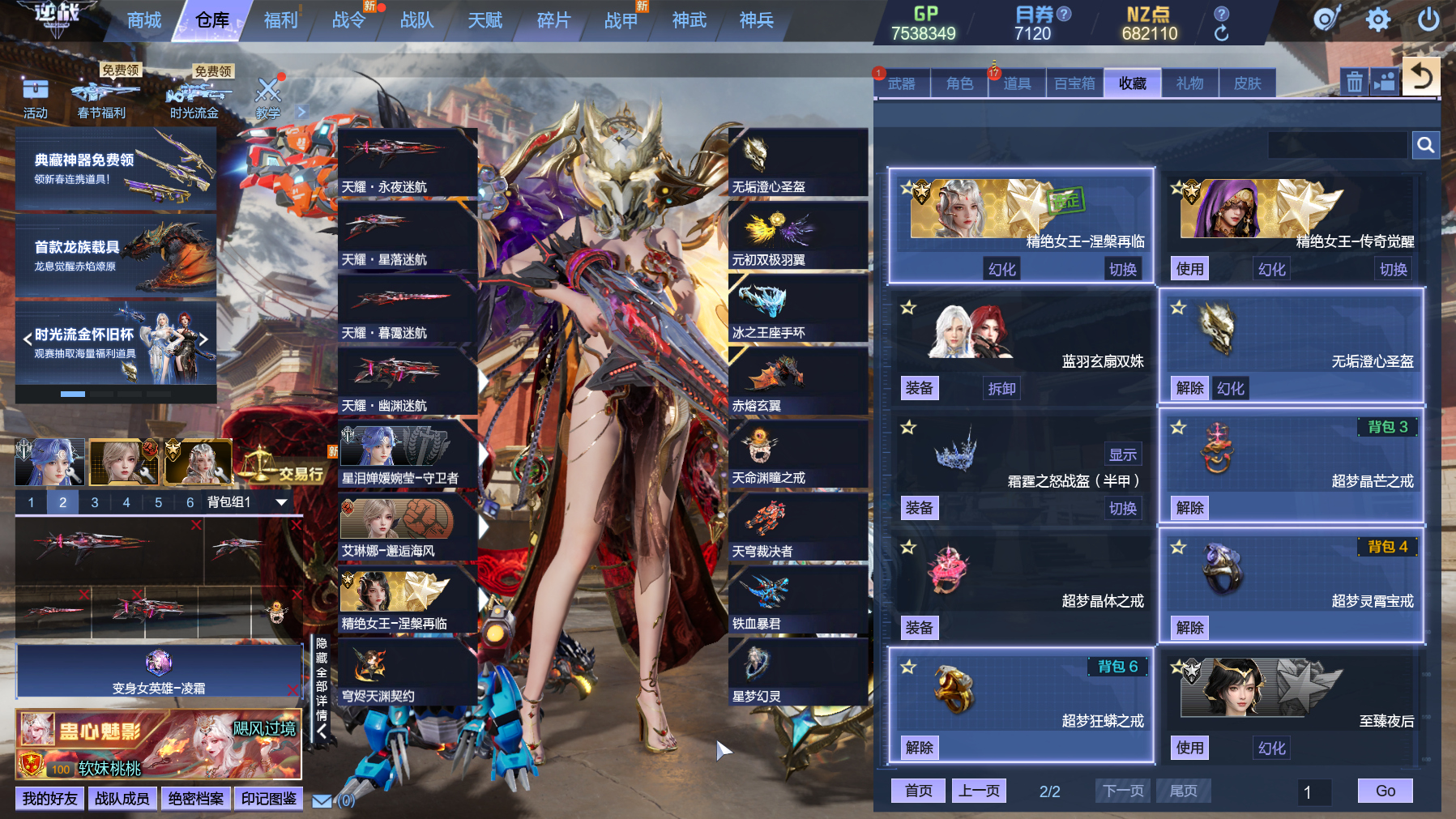 深渊武器30级、神武宝库绀蓝套、奥特曼五件套、塔防陷阱全能卡有很多天、百宝箱三级、泽塔装甲、裁决女帝-龙姬、