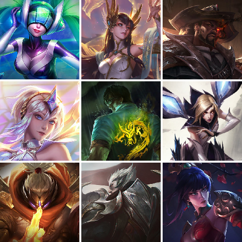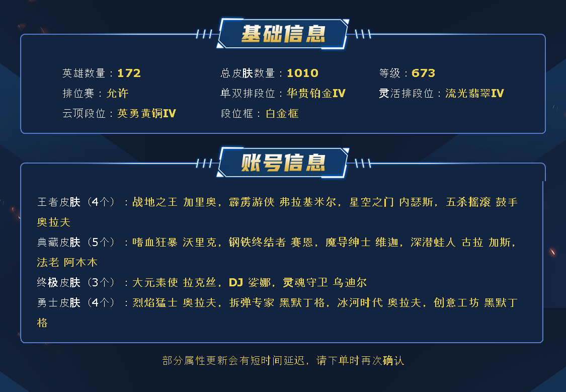 【607原皮肤222炫彩皮肤】至臻锤石、至臻奶妈、至臻武器、恐惧新星诺手、海克斯鳄鱼、海克斯人马、海克斯乌鸦、海克斯炸弹人、灰烬骑士派克、摄魂薇恩、海克斯安妮、海克斯大嘴、星之守护者佐伊、星之守护者EZ、玉剑传说舞剑仙刀妹、烈焰美人VN、马年皎月、狗年狗头、狗年光辉、狗年狼人、安妮梦游仙境、虎痴之拳、蛇年飞机、花木兰、张辽、奥斯曼大帝蛮王、泳池派对佐伊、泳池派对女警、泳池派对船长、征服者卡尔玛、征服者韦鲁斯、暗星女王拉克丝、日蚀骑士日女、真实伤害艾克、屠龙勇士奥拉夫、大元素使、DJ、灵魂守卫、冠军之隐、鸡里奥、克格汪、送披萨的小姐姐、万圣节莫甘娜、觅心之翼、觅心女王、魄罗骑士、甜心宝贝安妮、甜心宝贝琴女、甜心之翎洛、甜心之羽霞、卧虎藏龙、万圣节人马、MSI妖姬、勇者阿狸、勇者豹女、FNATIC全套、暗星锤石、黑夜亚索、神拳、神王诺手、神王盖伦、西部魔影卢锡安、星之守护者金克丝、源计划寒冰、源计划VN、地狱火韦鲁斯、吕布、未来战士卡牌、未来战士锤石、未来战士女警、武神、孙尚香、小蜜蜂大嘴、小蜜蜂玛尔扎哈、小蜜蜂悠米、战斗学院EZ、战斗学院拉克丝、赵云、真实伤害阿卡丽