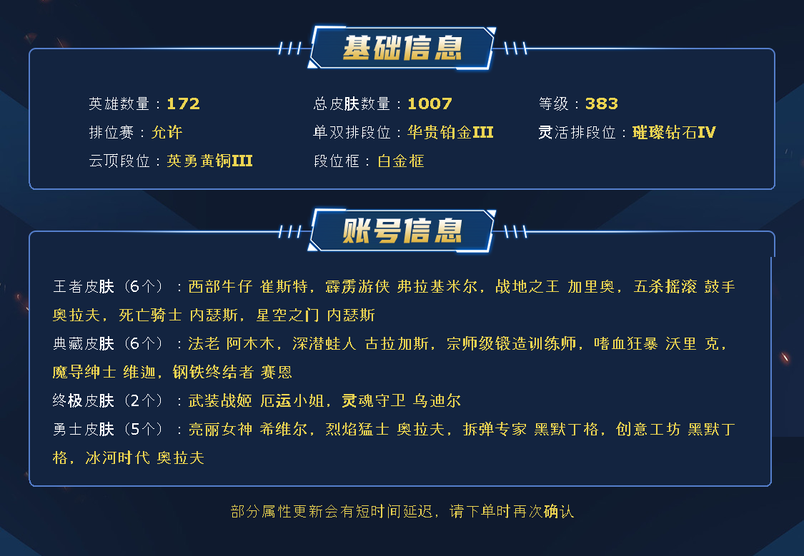 【全英雄可排位625原皮肤56炫彩皮肤】海克斯炸弹人、海克斯大嘴、灵能特工剑圣、黎明使者永恩、光明哨兵男枪、神龙尊者瞎子、穿星魔锋赵信、斩星魔剑易、鼠年贾克斯、鼠年瑟提、鼠年盖伦、鼠年德莱文、鼠年日女、勇敢的心诺手、星守EZ、司马懿仲达、狗年狗头、狗年拉克丝、狗年狼人、蛇年安妮、蛇年蛇女、电玩阿狸、电玩女枪、电玩锐雯、虎痴之拳、羊年金克丝、醒狮、猴年莫甘娜、猴年女警、张辽、西部天使赛娜、冠军蔷薇妖姬、创星之灵、泳池女警、太空律动格温、神龙尊者瑟提、灵魂莲华莉莉娅、灵魂莲华提莫、灵魂莲华亚索、灵魂莲华永恩、福牛守护者佛耶戈、武装战姬、灵魂守卫、电玩人马、冠军掠夺者、冠军之箭、万圣节莫甘娜、万圣节卡特琳娜、万圣节维克托、情人节安妮、情人节琴女、情人节霞、万圣节人马、御星魔矢、制胜金靴、暗星锤石、暗星尊烬、奥德赛凯隐、黑夜亚索、神王盖伦、未来战士女警、西部卢锡安、星守阿狸、星守金克丝、源计划派克、源计划薇恩、源计划寒冰、暗星铁男、吕布、奈落之炎慎、千纸双子、未来战士艾克、未来战士剑姬、未来战士慎、西部锤石、孙尚香、宇航员波比、源计划阿卡丽、战斗校长悠米、真实伤害亚索、双城之战全套