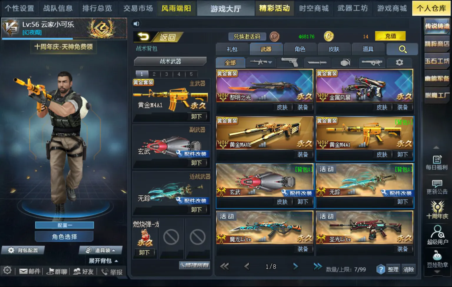 V3玄武满配件⭐无踪苍穹之鹰⭐巨齿狂鲨幽灵双子⭐黎明之光金属风暴⭐魔龙圣光强袭弯刀黄金M4A1军魂