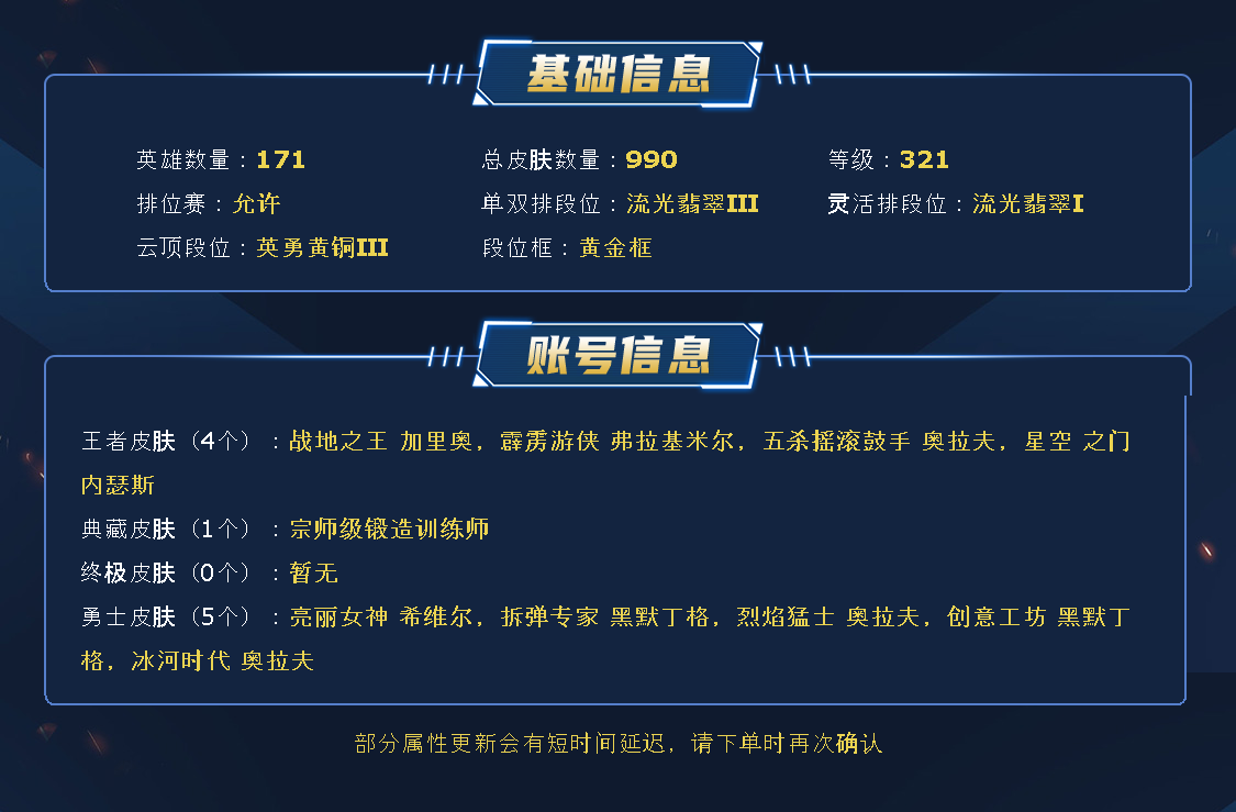 【全英雄可排位516原皮肤271炫彩皮肤】至臻塞拉斯、至臻盖伦、至臻EZ、至臻武器、至臻亚索、至臻劫、至臻瞎子、摄魂薇恩、恐惧新星诺手、龙瞎、海克斯鳄鱼、海克斯人马、海克斯炸弹人、海克斯波比、暗星大虫子、神凰行者萨勒芬妮、鼠年贾克斯、鼠年瑟提、勇敢的心诺手、玉剑男刀、狗年狗头、狗年光辉、蛇年蛇女、电玩锐雯、花木兰、双神龙尊者亚索、黎明永恩、青花瓷EZ、源计划铁男、神龙尊者瞎子、斩星魔剑、粉色萝莉小炮、万圣节小鱼人、西部魔影塔姆、海珀利安小队狗头、太空律动狗头、战斗学院孙悟空、无极执事剑圣、女帝芮尔、圣龙奥瑞利安索尔、新KDA卡莎、灵魂莲华亚索、灵魂莲华永恩、灵能特工蔚、水瓶星神俄洛伊、波江星神吸血鬼、古神梦魇、奥德赛炸弹人、冰雪节剑圣、电玩人马、冠军掠夺者、冠军之箭、冠军之志、情人节猫咪、情人节发条、万圣节劫、万圣节人马、勇者阿狸、暗星尊烬、奥德赛凯隐、黑夜亚索、黎明锐雯、黎明奶妈、日蚀日女、神拳、神王盖伦、神王诺手、屠龙勇士潘森、未来战士女警、西部卢锡安、西部寒冰、星守阿狸、星守金克丝、耀星女神拉克丝、源计划寒冰、战斗学院EZ、真实伤害艾克、暗星石头人、吕布、图奇影足、未来战士艾克、武神、西部锤石、西部诺手、小蜜蜂大嘴、小蜜蜂玛尔扎哈、小蜜蜂悠米、腥红之月剑圣卡特蛮王轮子妈、宇航员龙龟、源计划阿卡丽、源计划刀妹、源计划蔚、战斗教授男枪、战斗学院杰斯、战斗学院卡特、战斗学院拉克丝、赵云、真实伤害亚索