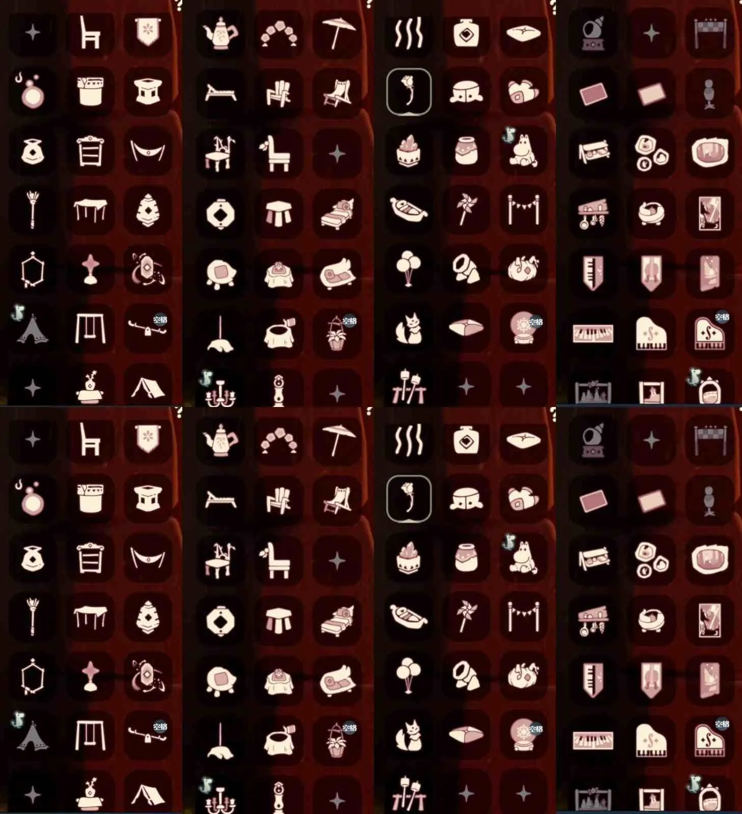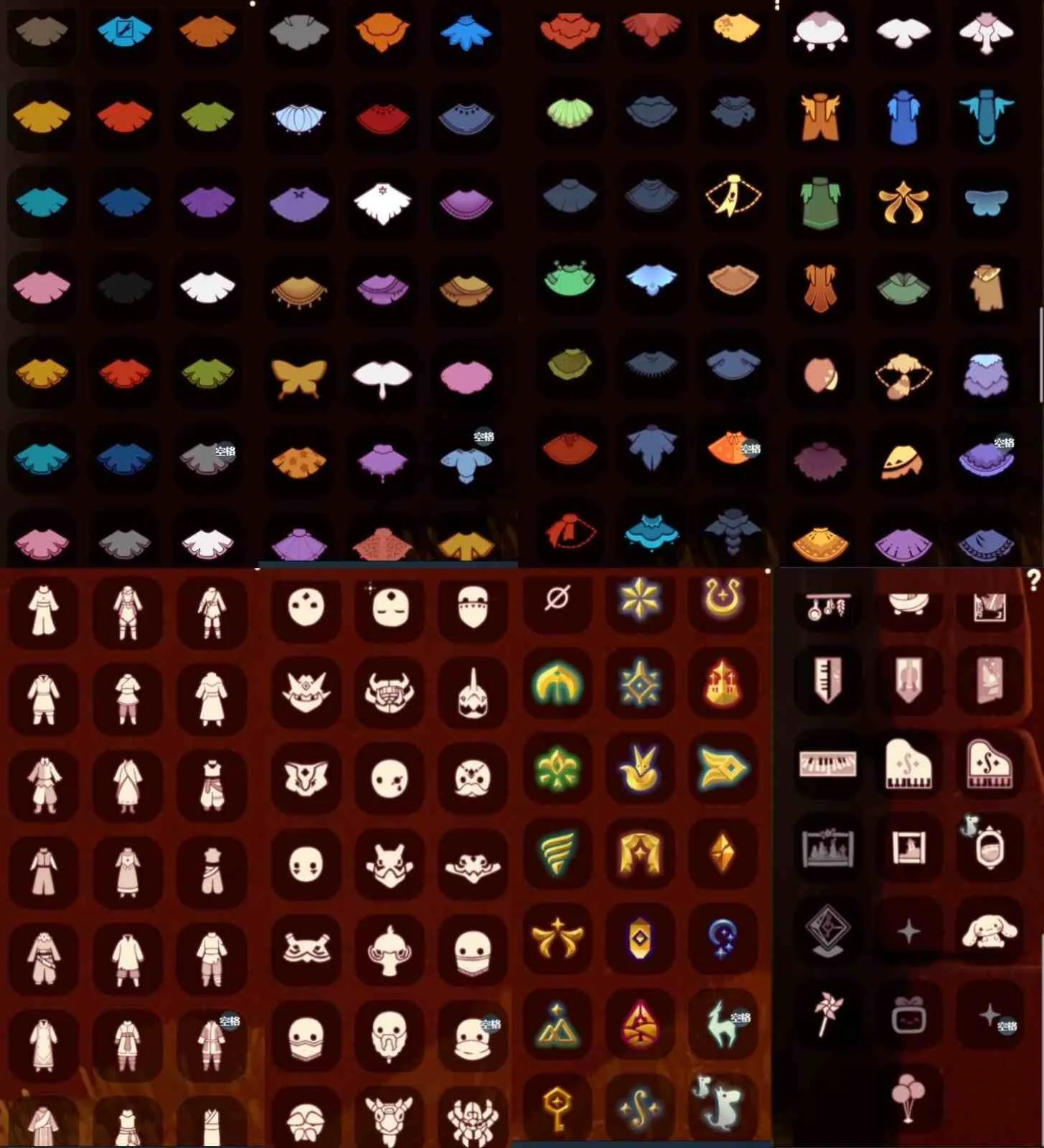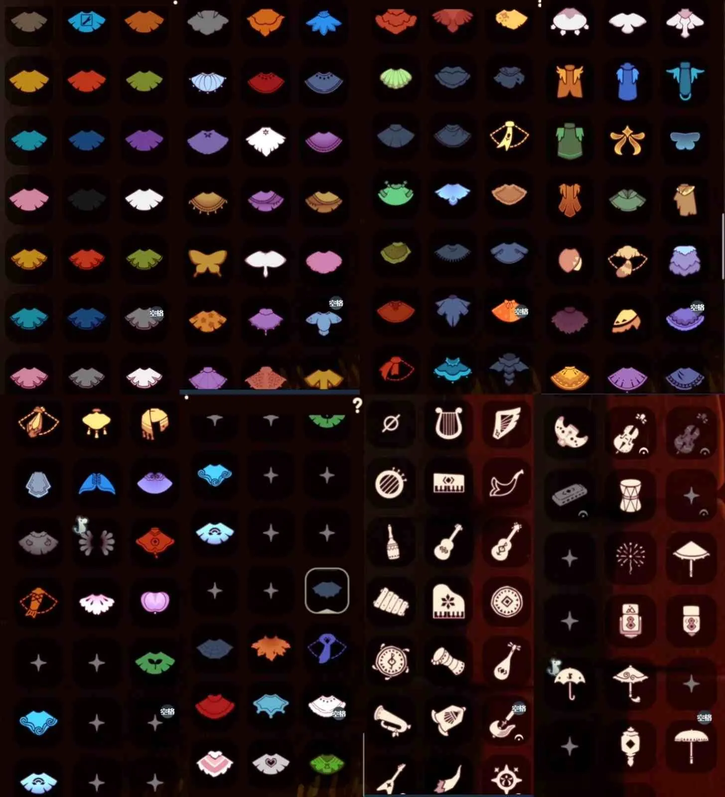 奔离远行裤 挚爱裙 女巫裙 星月头饰 彩虹耳钉 彩虹耳机 鹿角 枯角 蝴蝶结 水母肩饰 奔离远行发 彩虹帽 绊爱 锦鲤套 福娃 绒绒帽 朋克 巫师 贝壳头饰 雪花头饰 兔子头饰 橘子头饰 锦鲤头饰 蝙蝠斗 蛛丝斗 雪人斗 白绒斗 瑞雪斗 粽叶斗 欧若拉之翼 奉献斗 围巾斗 夹克 tgc 创始人 白吉他 音乐手碟 欧若拉之声 灯笼 阳伞 新春伞 雏鸟琴 船 二人茶座 三人茶桌 南瓜背饰 皮皮猫背饰 水晶球 烧烤架 秋千 跷跷板