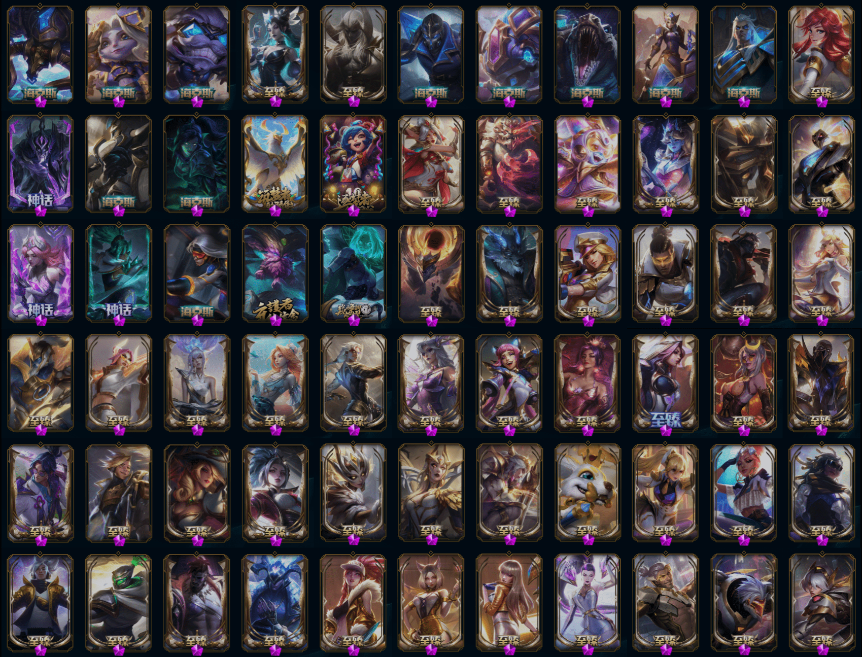 【重要皮肤】魔女阿卡丽至臻 斗魂觉醒派克至臻 DRX亚托克斯至臻 花仙使者卡特琳娜至臻 绝息圣堂厄运小姐至臻 剪纸仙灵希维尔至臻 北极星使者沃里克至臻 太空律动魔音海妖娜美至臻 至高天奎桑提至臻 灵魂莲华易至臻 海珀利安小队X09星环灵风迦娜至臻 星之守护者辛德拉至臻 海之歌萨勒芬妮至臻 西部魔影猎天使恶魔泰隆至臻 幻灵战斗猫金克丝至臻 神凰行者烈羽焰凰霞至臻 魅惑女巫莫甘娜至臻 女帝黛安娜至臻 战斗学院蕾欧娜至臻 太空律动璐璐至臻 魔女婕拉至臻 魔女乐芙兰至臻 未来战士卢锡安至臻 真实伤害亚索至臻 真实伤害赛娜至臻 星之守护者索拉卡至臻 灵能特工伊泽瑞尔至臻 福牛守护者菲奥娜至臻 源计划逆流塞拉斯至臻 源计划阴劫至臻 王国机神玄武盖伦至臻 暗星墨菲特至臻 黑夜使者凯隐至臻 神龙尊者均衡之龙沃利贝尔至臻 征服者贾克斯至臻 飞升战神潘森至臻 焰执事布兰德至臻 KDA二代卡莎至臻 KDA一代卡莎至臻 KDA阿狸至臻 KDA阿卡丽至臻 KDA阿卡丽2022至臻 战斗学院拉克丝至臻 战斗学院拉克丝2022至臻 烈焰美人薇恩至臻 烈焰美人薇恩2022至臻 电玩女神凯特琳至臻 电玩女神凯特琳2022至臻 源计划正义艾瑞莉娅至臻 源计划正义艾瑞莉娅2022至臻 真实伤害奇亚娜至臻 绒毛菲兹至臻 绒毛菲兹2022至臻 玉剑传说武剑仙至臻 玉剑传说武剑仙2022至臻 腥红之月亚托克斯至臻 腥红之月亚托克斯2022至臻 未来战士锤石至臻 未来战士锤石2022至臻 灰烬征服者潘森 海克斯科技瑟庄妮 海克斯科技雷克顿 海克斯科技克格莫 海克斯科技斯维因 海克斯科技吉格斯 海克斯科技波比 海克斯科技阿利斯塔 海克斯科技阿木木 海克斯科技崔丝塔娜 水晶圣骑塔莉垭 水晶圣骑蕾欧娜 永恒之森奥恩 零之枪骑赫卡里姆 摄魂使者薇恩 新创战纪希维尔 胜利女神娑娜 胜利女神希维尔 胜利之王泰达米尔 胜利巨口克格莫 钢铁军团拉克丝 养蜂人辛吉德 勇敢的心德莱厄斯 玉剑传说无影 神凰行者烈羽焰凰霞 海珀利安小队Z01猎户座卢锡安 玉剑传说神机花火 玉剑传说舞龙卫 灵能特工易 替父从军花木兰 碧玉之牙卡西奥佩娅 古琴余韵娑娜 你看见过我的熊猫吗安妮 北辰之威内瑟斯 南天之怒沃里克 美猴王孙悟空 玉净夜叉凯特琳 紫金罗刹莫甘娜 虎痴之拳蔚 张辽文远 金猪烈焰瑟庄妮 神龙之翼库奇 王国机神朱雀蕾欧娜 王国机神苍狼瑟提 王国机神白虎贾克斯 王国机神玄武盖伦 福牛守护者厄斐琉斯 福牛守护者嘉文四世 胜利女神奥莉安娜 胜利枪神格雷福斯 胜利枪神卢锡安 胜利之剑亚托克斯 幽梦玫瑰伊莉丝 觅心游侠卢锡安 觅心女王艾希 觅心之翼奎因 觅心萝莉金克丝 幽梦玫瑰辛德拉 幽梦玫瑰泰隆 寒冬精灵璐璐 冰雪风暴希维尔 狂心冰王图奇 冰雪女神辛德拉 魄罗骑士瑟庄妮 夺命美人卡特琳娜 勇敢的心德莱厄斯 海之歌泽丽 泳池派对普朗克 泳池派对辛德拉 泳池派对奥莉安娜 泳池派对塔莉垭 泳池派对格雷福斯 泳池派对蕾欧娜 电玩战魂赫卡里姆 御星魔矢艾希 送披萨的小姐姐希维尔 鸡里奥 克格汪 制胜金球拉莫斯 DRX千珏 EDG厄斐琉斯 EDG佛耶戈 EDG格雷福斯 EDG悠米 EDG佐伊 FPX锤石 FPX薇恩 FPX李青 FPX普朗克 FPX墨菲特 iG卡蜜尔 iG洛 iG卡莎 iG艾瑞莉娅 iG乐芙兰 iG菲奥娜 SSG霞 SSG洛 SSG纳尔 SSG塔莉垭 SSG伊泽瑞尔 SKTT1奥拉夫 SKTT1阿利斯塔 SKTT1卡莉丝塔 SSW泰隆 SSW图奇 SSW辛吉德 SKTT1劫 SKTT1婕拉 暗杀星努努和威朗普 暗杀星伊泽瑞尔 Fnatic迦娜 Fnatic库奇 Fnatic古拉加斯 Fnatic嘉文四世 Fnatic卡尔萨斯 冰雪节格雷福斯 冰雪节玛尔扎哈 防暴机器人布里茨 防暴士兵格雷福斯 防暴士兵辛吉德 防暴天使凯尔 冠军掠夺者卡兹克 冠军之刃锐雯2016 冠军之志瑞兹 鬼影重重魔腾 胡桃夹子萨科 惊悚派对阿木木 惊悚派对费德提克 警用试作体K9内瑟斯 蓝色忧郁崔斯特 蒙多蒙多 密林猎手提莫 南瓜头费德提克 破空枪骑孙悟空 圣诞精灵崔丝塔娜 圣诞开心鬼提莫 圣诞老人古拉加斯 圣诞玩偶波比 圣诞驯鹿克格莫 喜庆之树茂凯 邪恶圣诞老人维迦 幸福女神乐芙兰 雪默丁格 野兽猎人德莱文 野兽猎人泰达米尔 英勇玩具兵普朗克 勇者阿狸 征服者卡尔玛 征服者诺提勒斯 征服者韦鲁斯 暗影沃里克 阿木木主人不要我了 2021全球总决赛嘉文四世 都铎王朝图奇 十五周年纪念希维尔 十周年纪念安妮 源代码乐芙兰 神凰行者瑞羽圣凰艾尼维亚 胜利凤凰艾尼维亚 斗魂觉醒莎弥拉 未来战士伊泽瑞尔 武装战姬厄运小姐 KDAALLOUT萨勒芬妮独立音乐人 KDAALLOUT萨勒芬妮明日新星 KDAALLOUT萨勒芬妮超级巨星 绝息圣堂洛