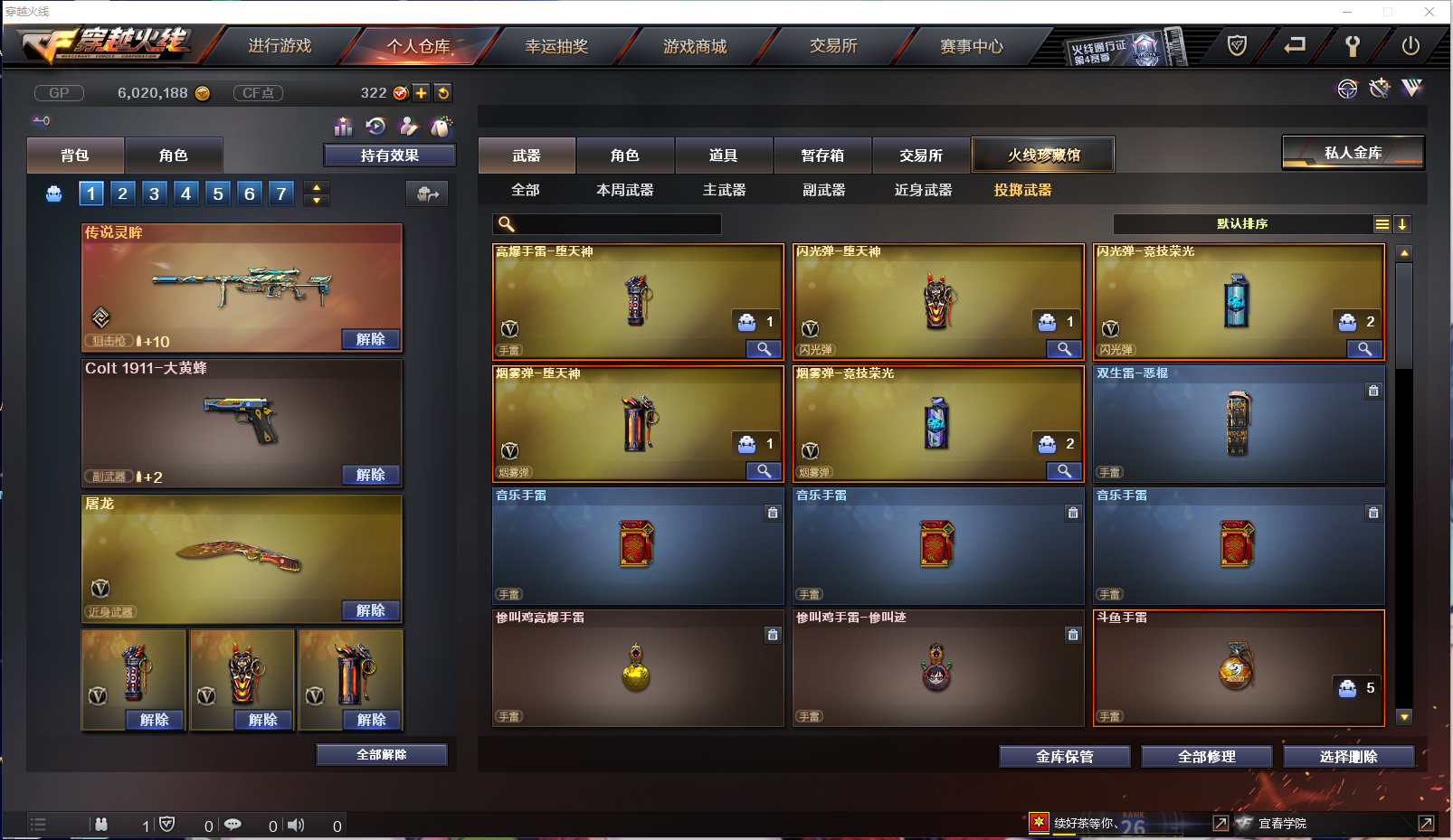 【投掷武器】堕天神套 闪光弹竞技荣光 烟雾弹竞技荣光 音乐手雷 高爆雷蛇 迷你生化手雷
