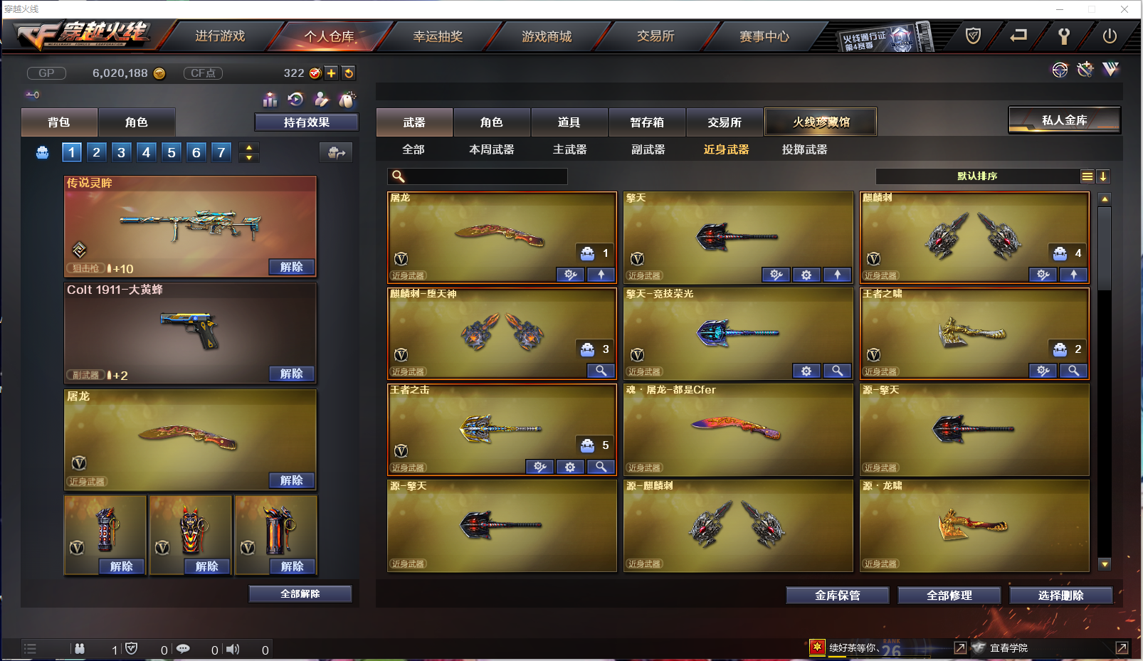 【近身武器】屠龙 擎天 麒麟刺 麒麟刺堕天神 擎天竞技荣光 王者之啸 王者之击 魂屠龙都是CFER 源擎天*2 源麒麟刺 源龙啸*2 源屠龙 金刚伞 荣耀之证