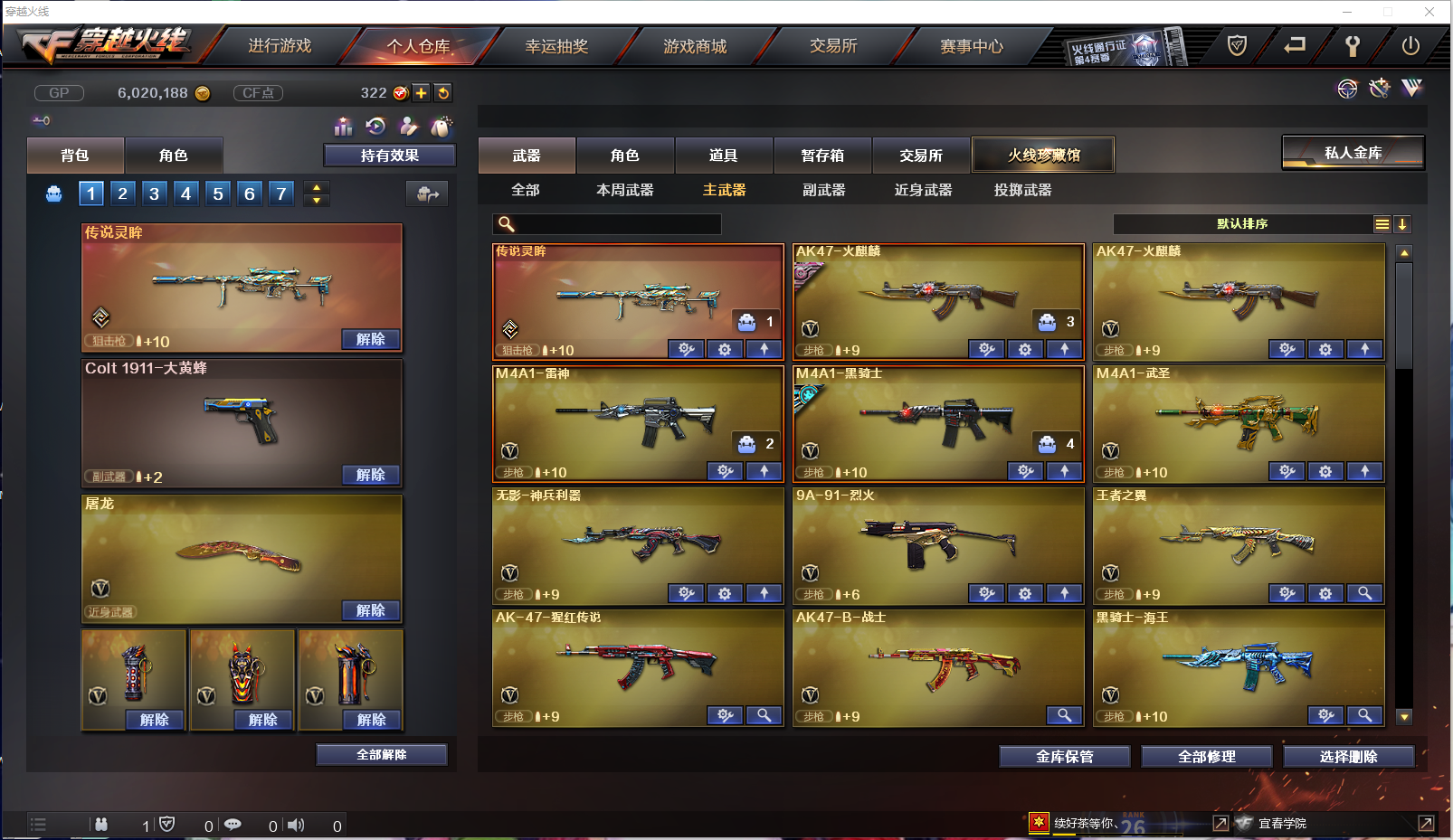 【主武器】传说灵眸 火麒麟*2 雷神 黑骑士 武圣 无影神兵利器 9A91-烈火 王者之翼 猩红传说 战士 黑骑士海王 身先士卒 常胜将军 毁灭 暗月传说*3 盘龙*2 炼狱 炼狱风暴 烈龙*6 M4A1-十二生肖龙雷神 黑骑士摸金校尉 魂雷神萌杀 魂死神机甲核心 魂QBZ03-金色蔷薇-萌杀*2 魂黑骑士幻能朋克*3 魂黑骑士破浪10年 魂黑骑士现代金属*2 魂雷神15周年嘉年华 魂雷神维纳斯 魂龙血锋芒破茧*2 雷神赛博朋克 青龙魂 御超新星圣诞 御黑骑士白马银枪*2 御黑武士烈虎 御火麒麟平天大圣 御雷神葫芦兄弟 御雷神烈虎*2 御雷神小白龙 御麒麟18*2 源火麒麟*3 源雷神*4 源天启 源AK47-黑武士 源QBZ03-金色蔷薇 源黑骑士 源机械迷城 源千变*2 源无影*2 源武圣*2 AWM-裁决-百城联赛天津 魂毁灭墨兰*2 魂毁灭青帝 魂毁灭神秘黑洞 天龙曼陀罗 御毁灭黑大圣 御毁灭葫芦兄弟 御毁灭怒火大圣 源裁决 源毁灭*4 源极光*2 源天龙 源朱雀大炮 魂炼狱玩具枪 魂炼狱月 加特林炼狱掌火 炼狱小刚 御炼狱女娲*2 蝴蝶 QBZ吕布 死亡之眼