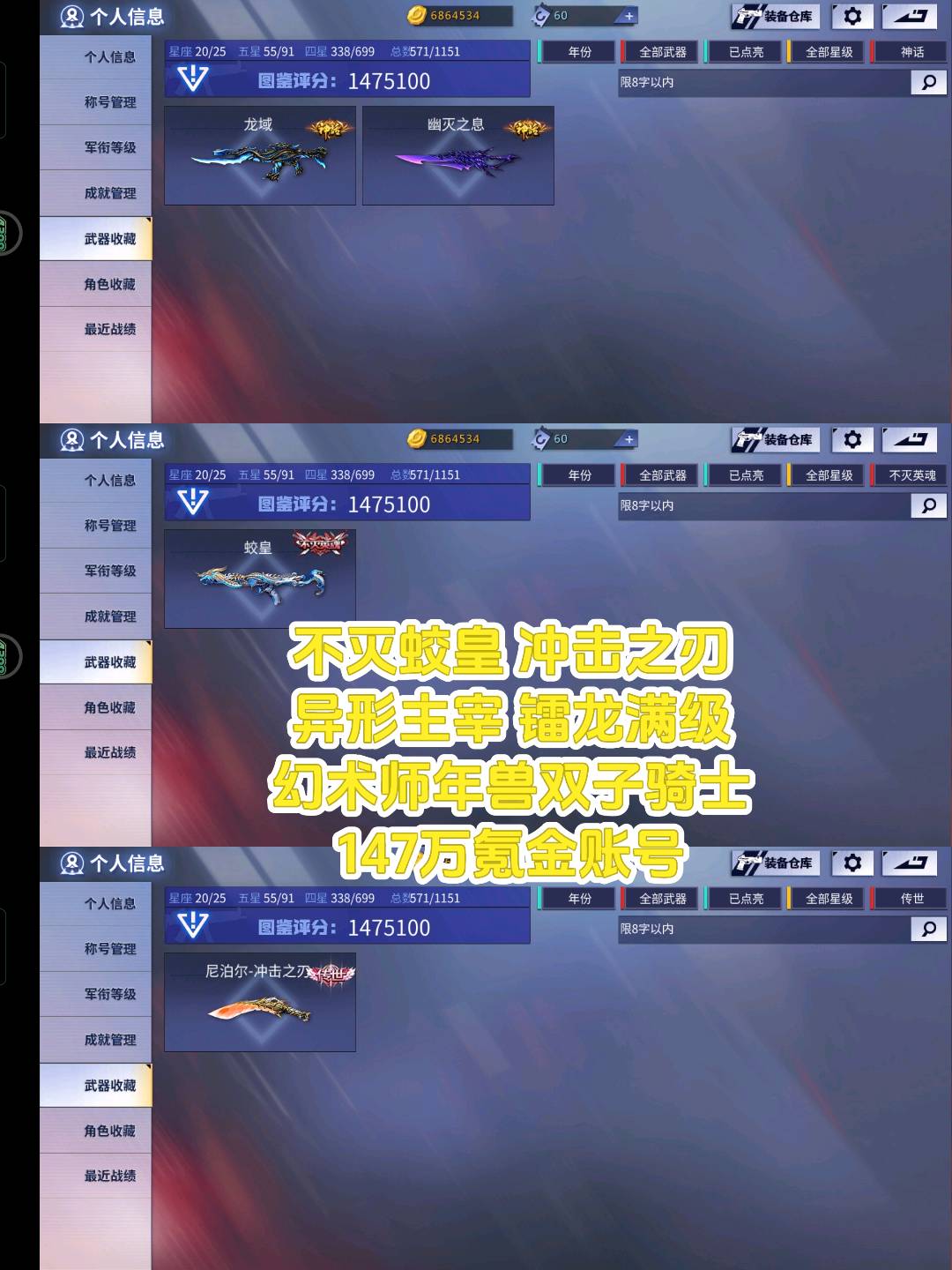 ⭐4399二区极品号147W武器图鉴分⭐