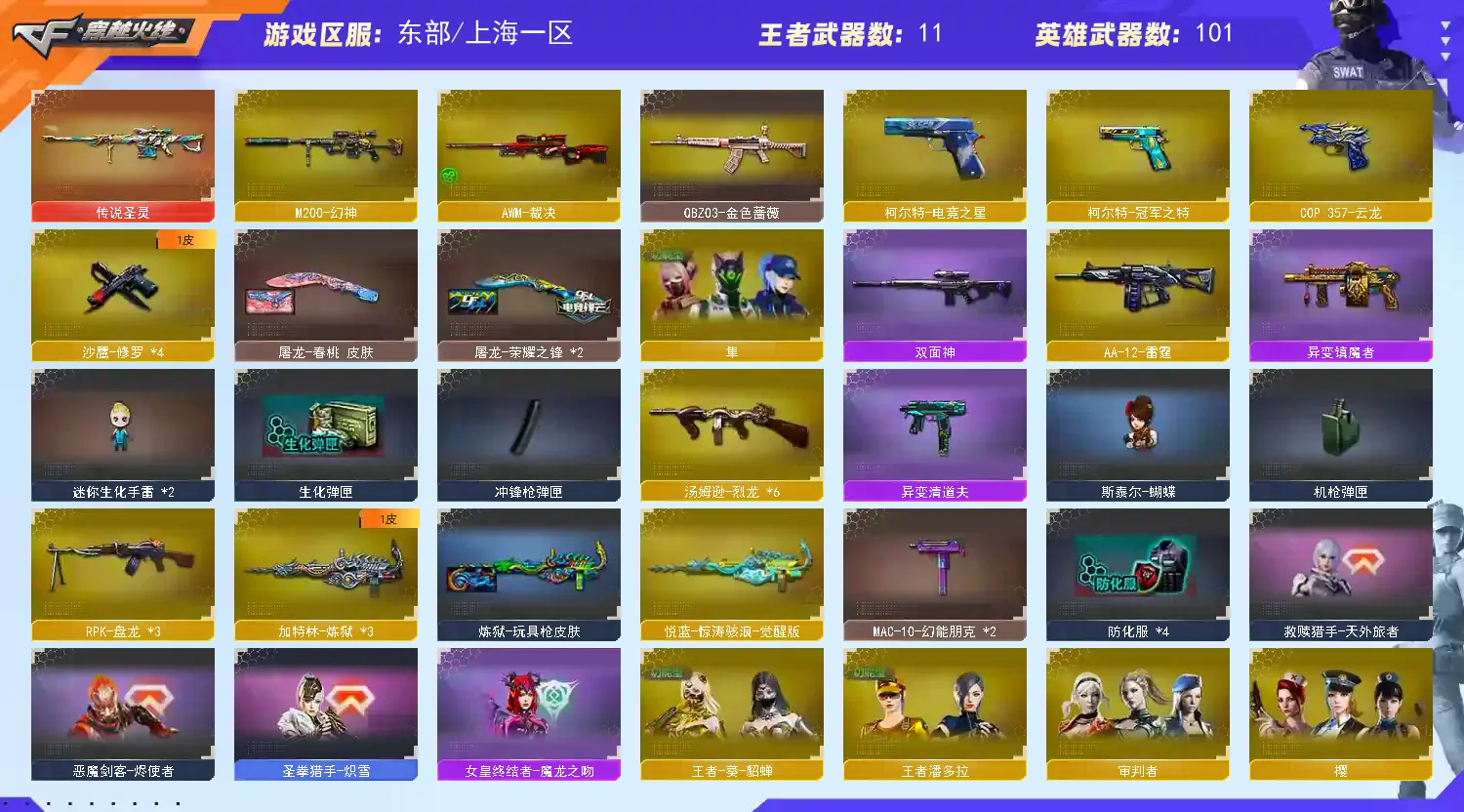 M200幻神|传说圣灵|6烈龙斯泰尔蝴蝶清道夫|王者涂鸦佣兵觉醒捕食者之眼|QBZ金色蔷薇|白虎电玩蓝兔|生化爆破全装号