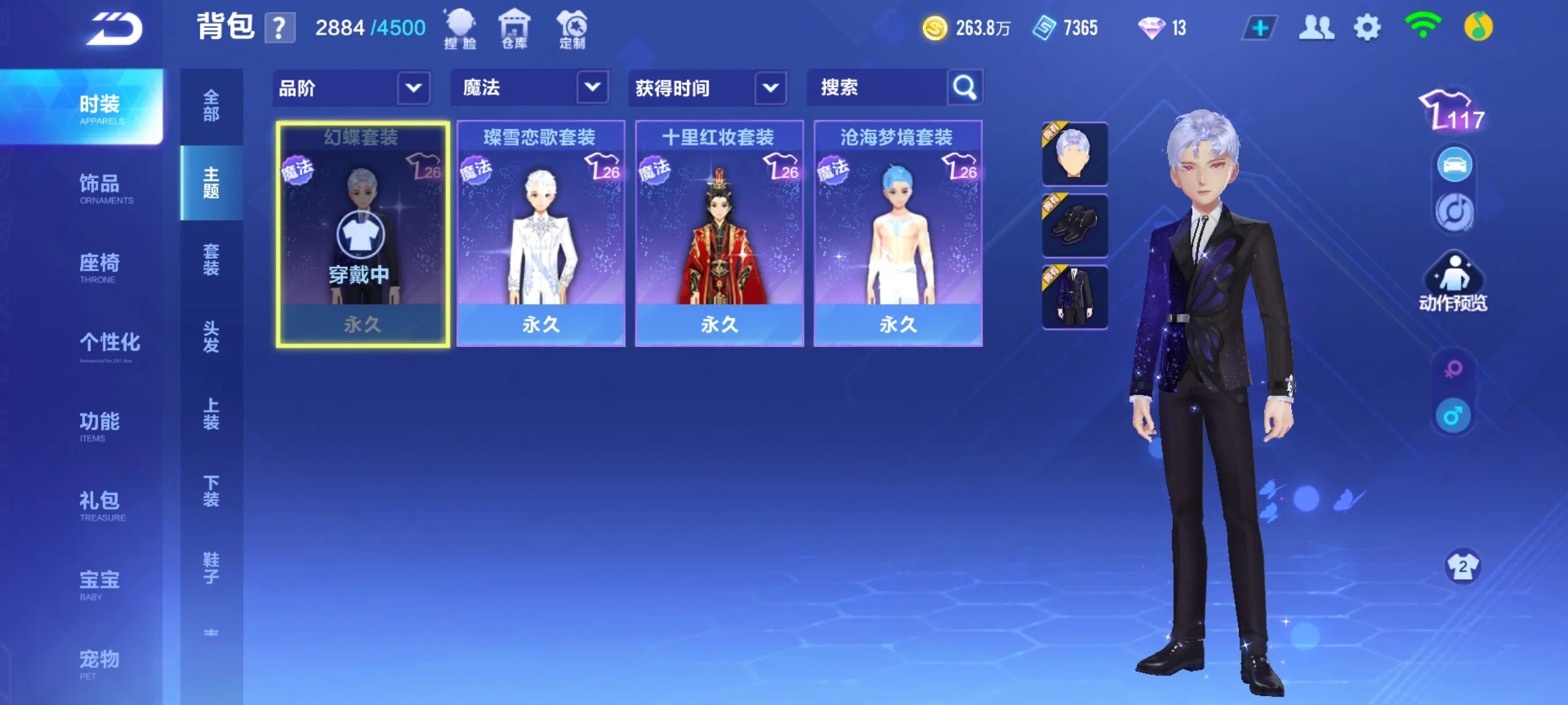 男装 1套幻生 4套魔法 28套动作+大量其他服饰装备