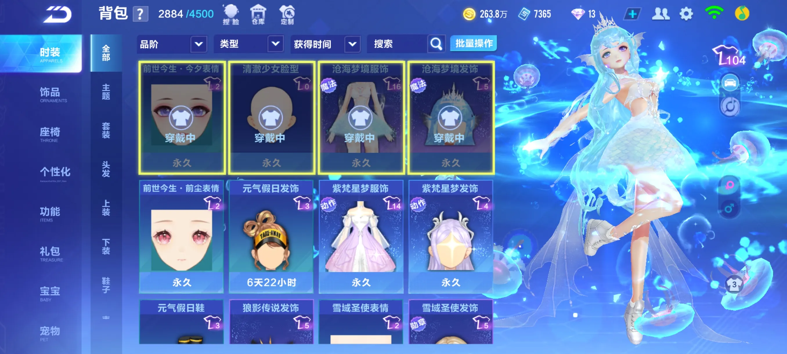前生今世/幻蝶女装/沧海梦境/璨雪恋歌/蓝焰离歌/若水/遗梦星河/青云烟雨/白骨精精/魔法少女+大量装备服饰
