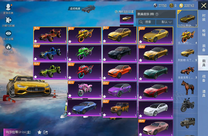 金色玛莎拉蒂 金玛莎 粉色玛莎 蓝色玛莎 紫色特斯拉