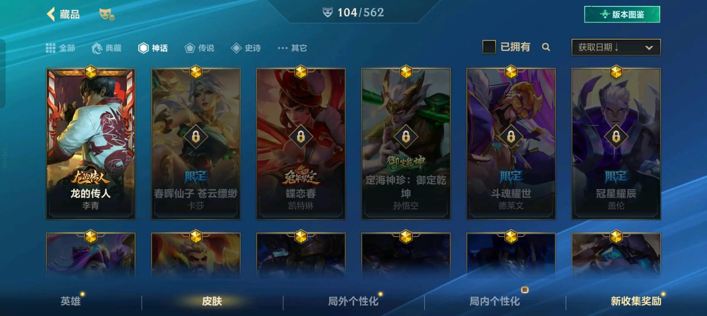 【安卓】 编号q83/最强氪金小号可排位!一神话104皮质量/绝版龙虾!暗星尊西部魔影套!武神圣龙套!