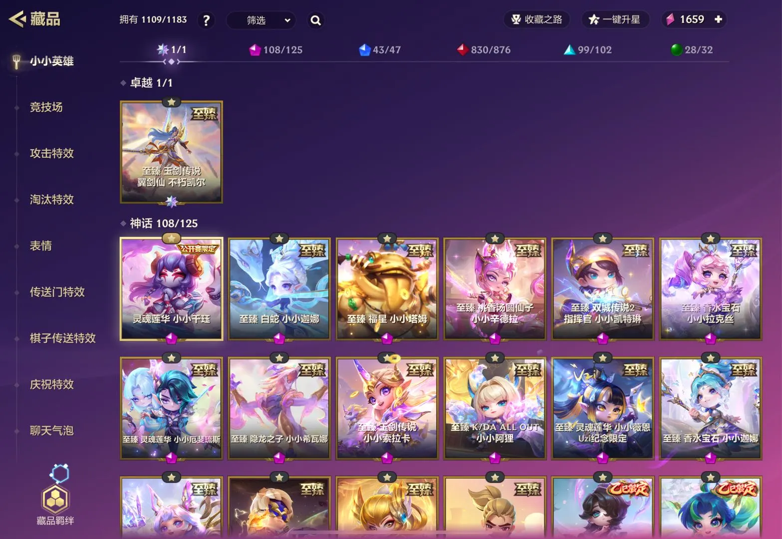 🌷至臻拉克丝🌷至臻厄斐琉斯🌷幻灵金克斯🌷游龙出海🌷kda超级巨星魔典萨勒芬妮🌷至臻隐龙之子希瓦娜🌷至臻阿狸🌷至臻香水宝石迦娜🌷至臻剪纸仙灵格温🌷至臻神龙尊者李青🌷鸡里奥🌷哞利斯塔🌷山海绘卷妮蔻🌷神王