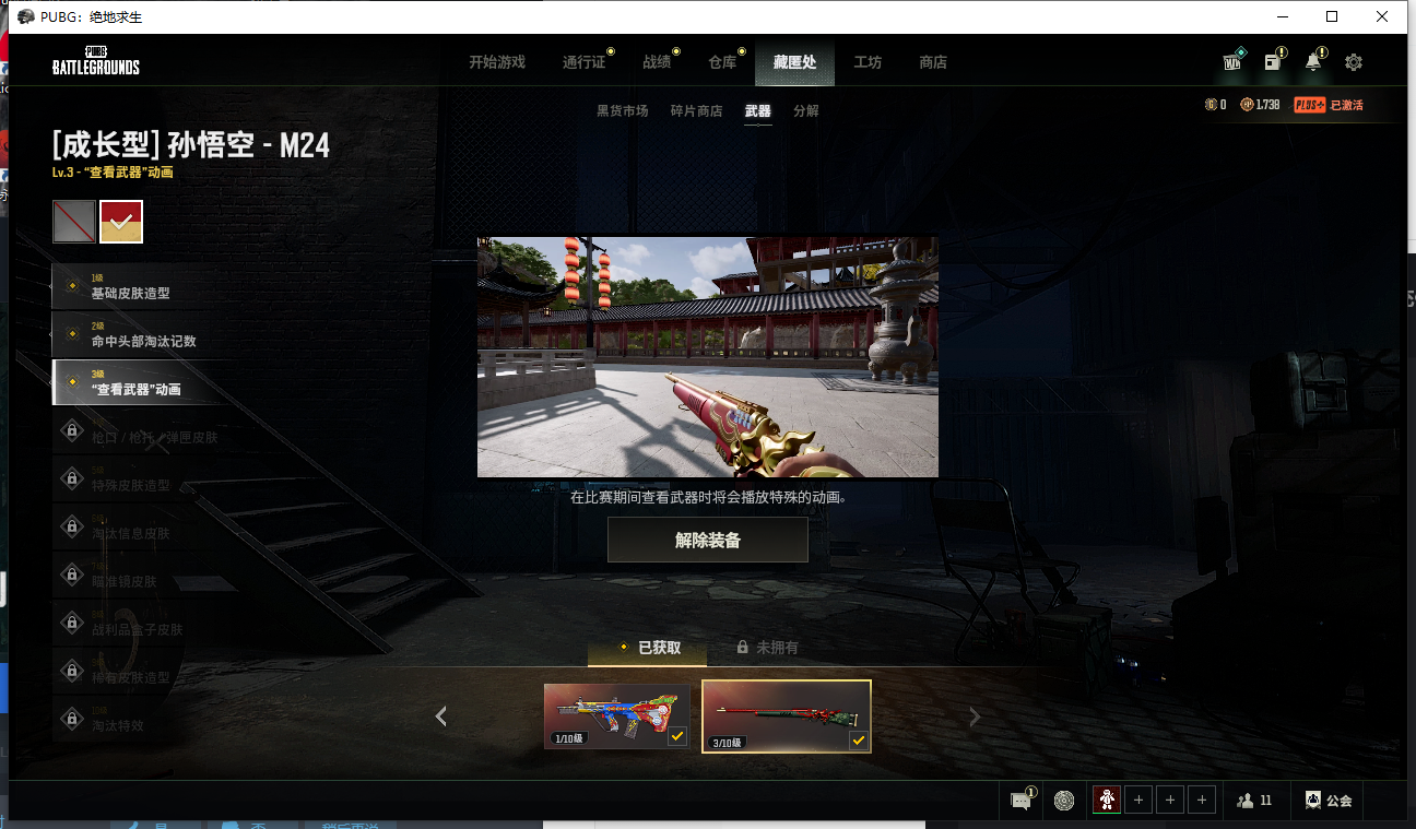 可排位号阿斯顿马丁超跑丶爆裂aug丶异色悟空m24丶毒液762丶蜂刺slr大炮丶沙悟净套装多皮肤