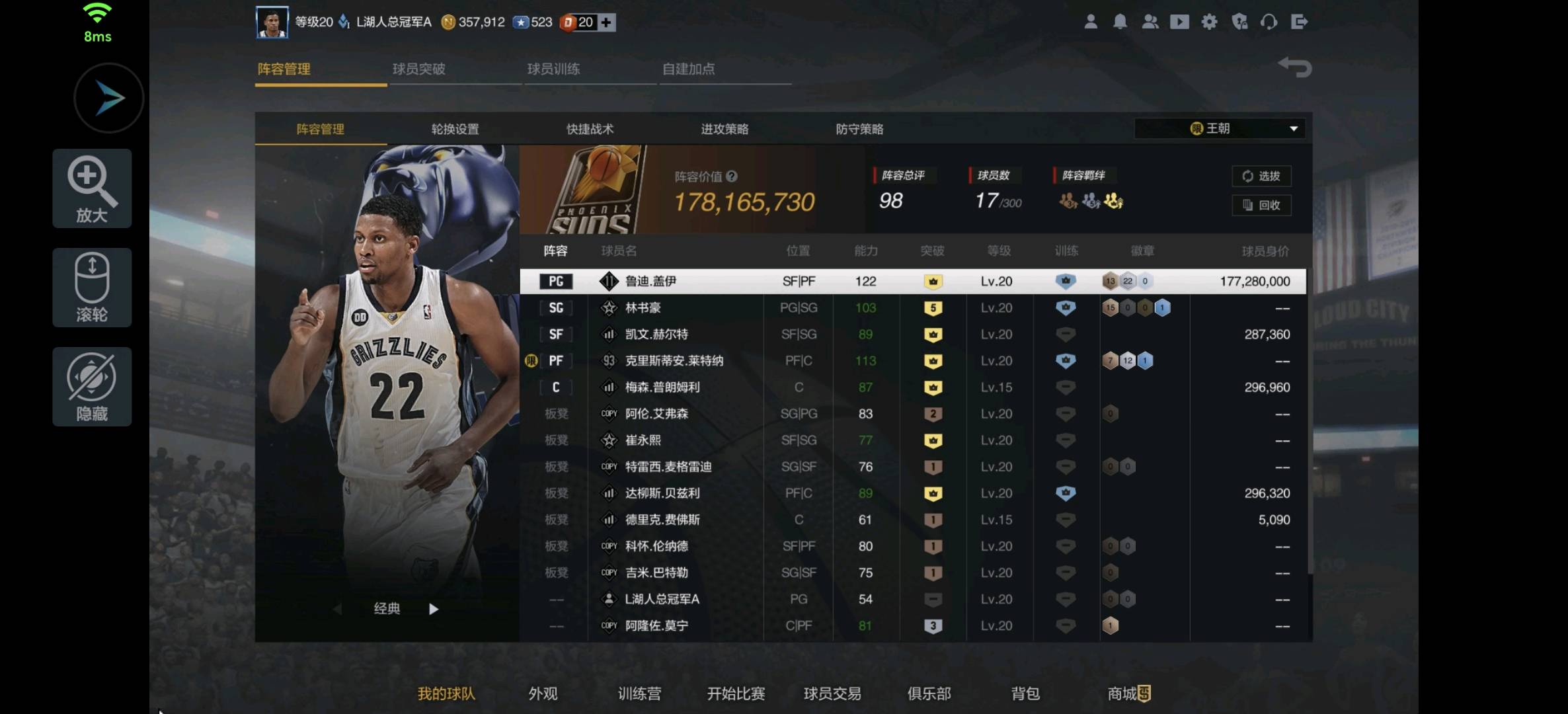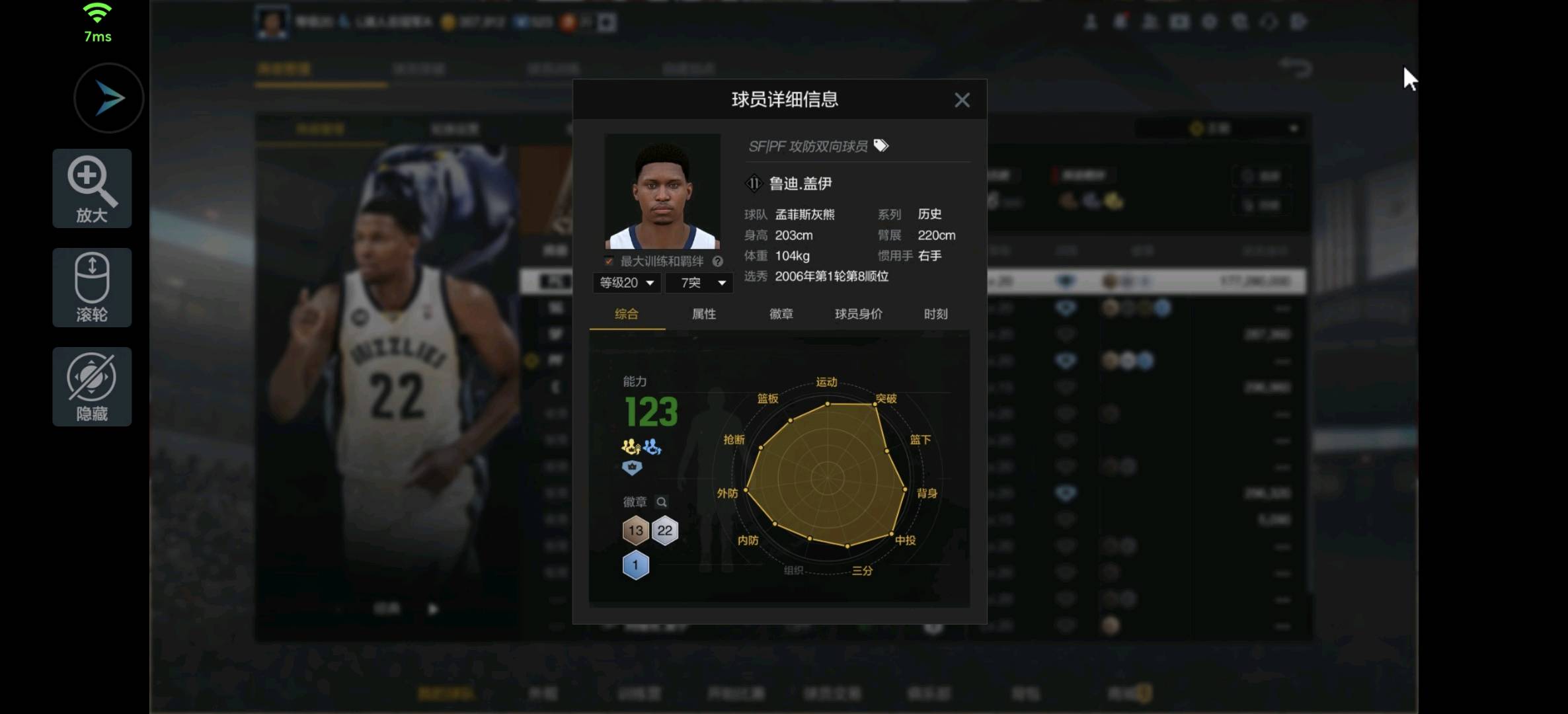 卡皇二号位满突鲁迪盖伊(绝对快乐超大模型),加强版皮蓬,全套冲框防守篮板投篮徽章,能防能三能筘能抢