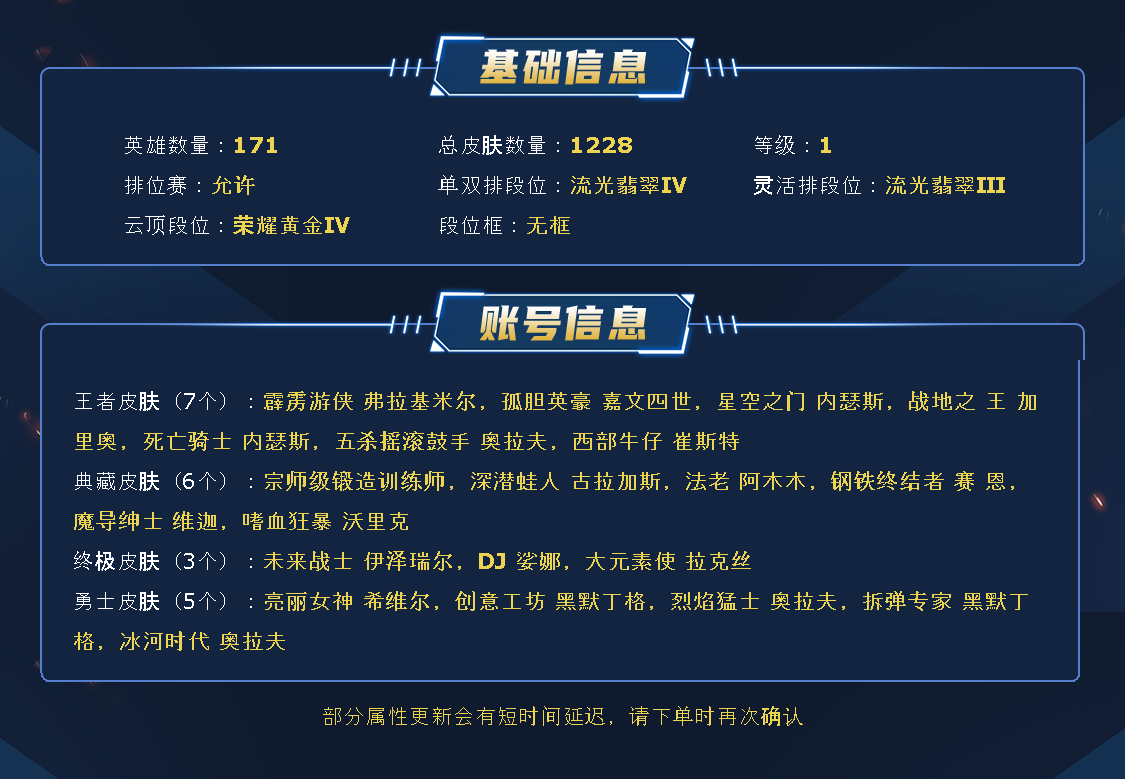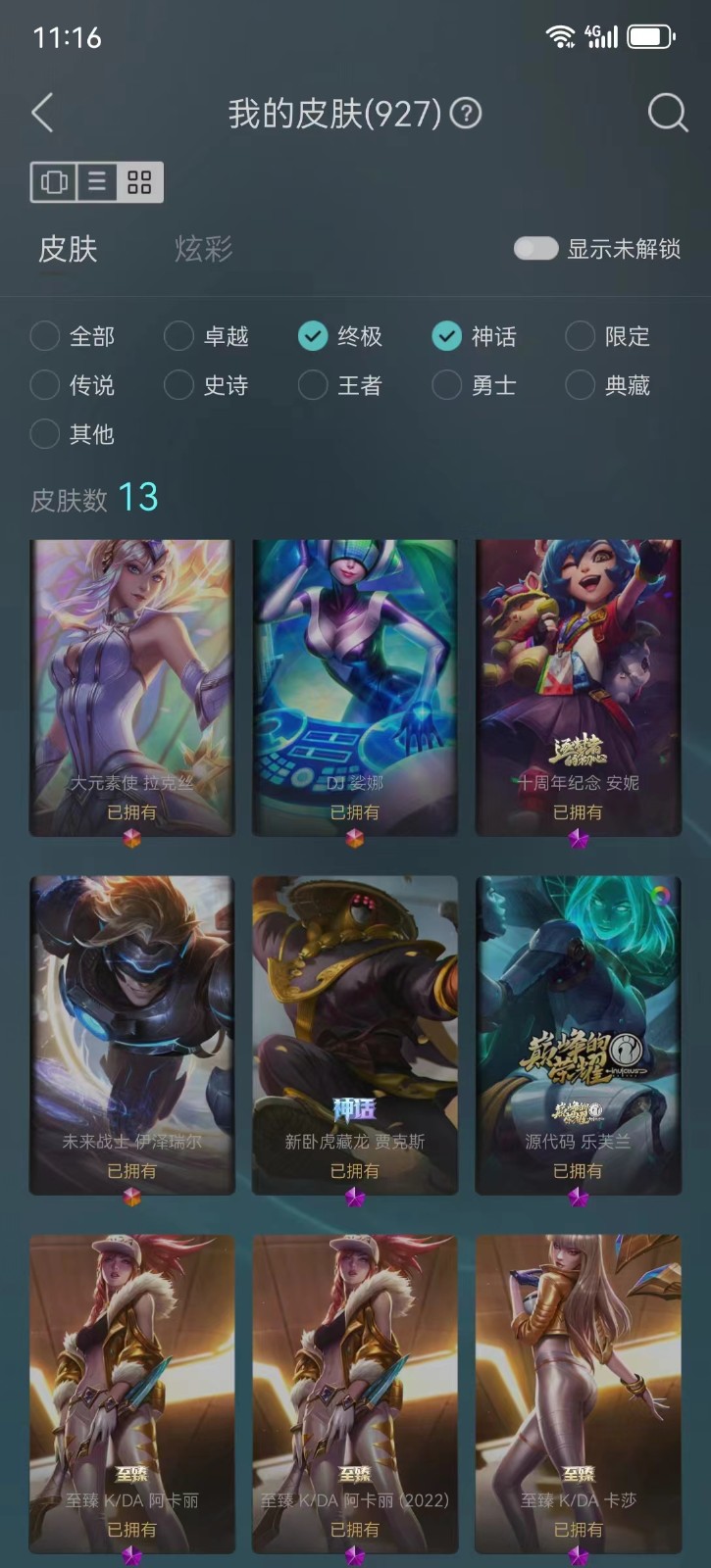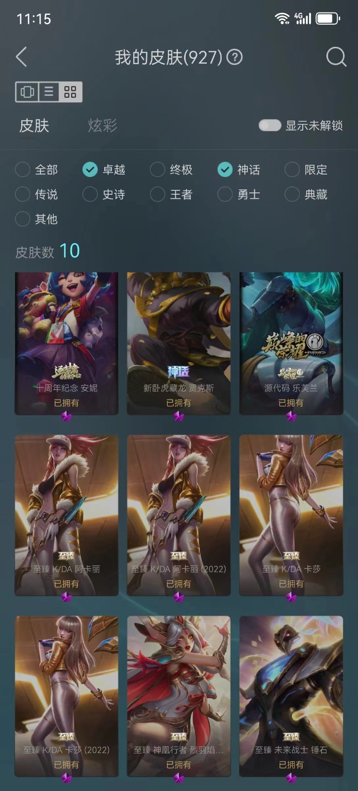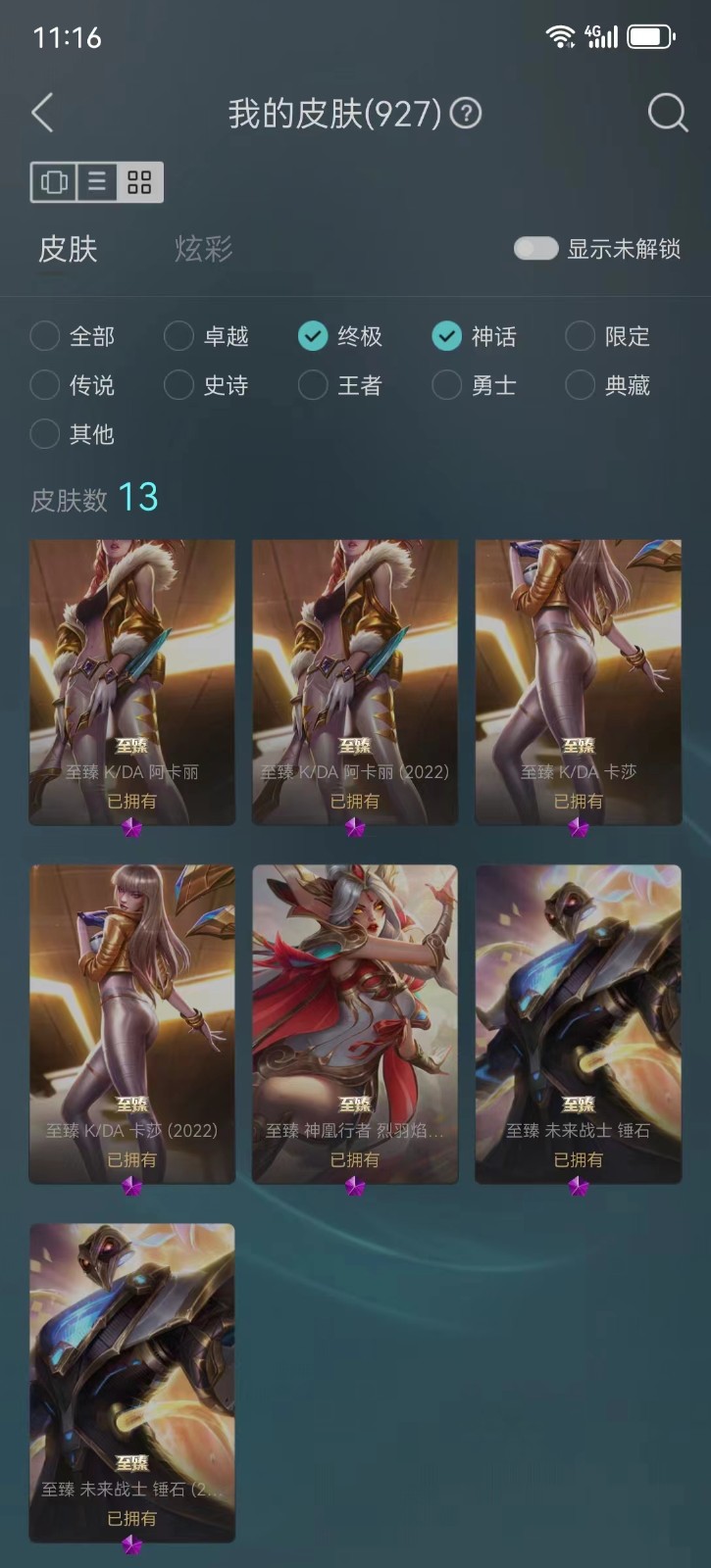比尔吉沃特1201皮 至臻黛安娜 泽丽 霞等 龙猴狗年拉克丝等 斩星*穿星魔锋御星之矢 云顶有小小大龙可排位