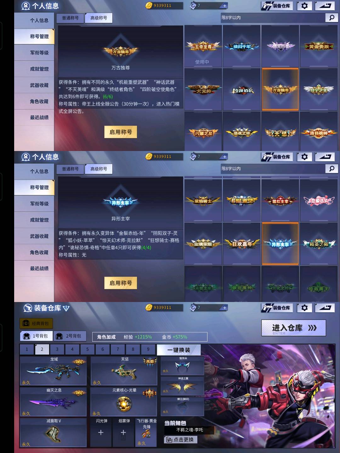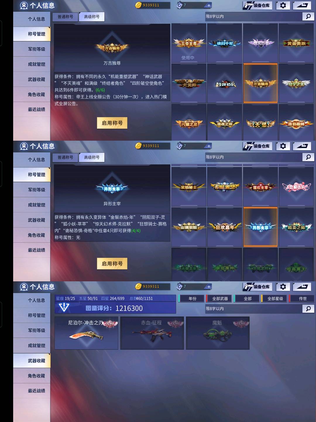 4399游戏盒子登录三区,个人图鉴上榜账号121W图鉴分,二级密码随便重置,连续租三天二级密码自行设置,拥有五帝至尊 万古独尊 异形主宰 大元帅 紫焰骑士等称号,神话武器有 猩红伯爵 浩日战神 龙域 幽灭之息,变异体有狐小妖 幻术师 狂想骑士 阴阳双子 还有冲击之刃等热武器,欢迎收藏下单体验!