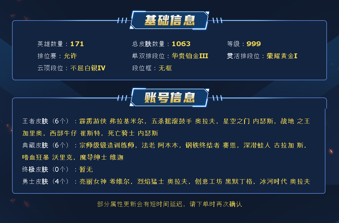 ~~喜欢记得收藏~~可排位~~999皮全英雄丨712原皮213炫彩丨40神话/至臻/海克斯丨IG套丨创星露露丨御星艾希丨泳池女警丨星守佐伊丨嫦娥皎月丨勇敢的心丨玉剑无极丨舞会公主丨KDA卡莎丨羊年金克斯丨神龙尊者李青丨灵魂莲华永恩丨电玩卡莎瑞文丨海之歌萨勒芬妮~~租之前尽量查一下游戏ID,确保段位是您需要的,避免浪费您的时间~~请勿挂机逃跑故意送人头,谢谢合作,谢谢~~