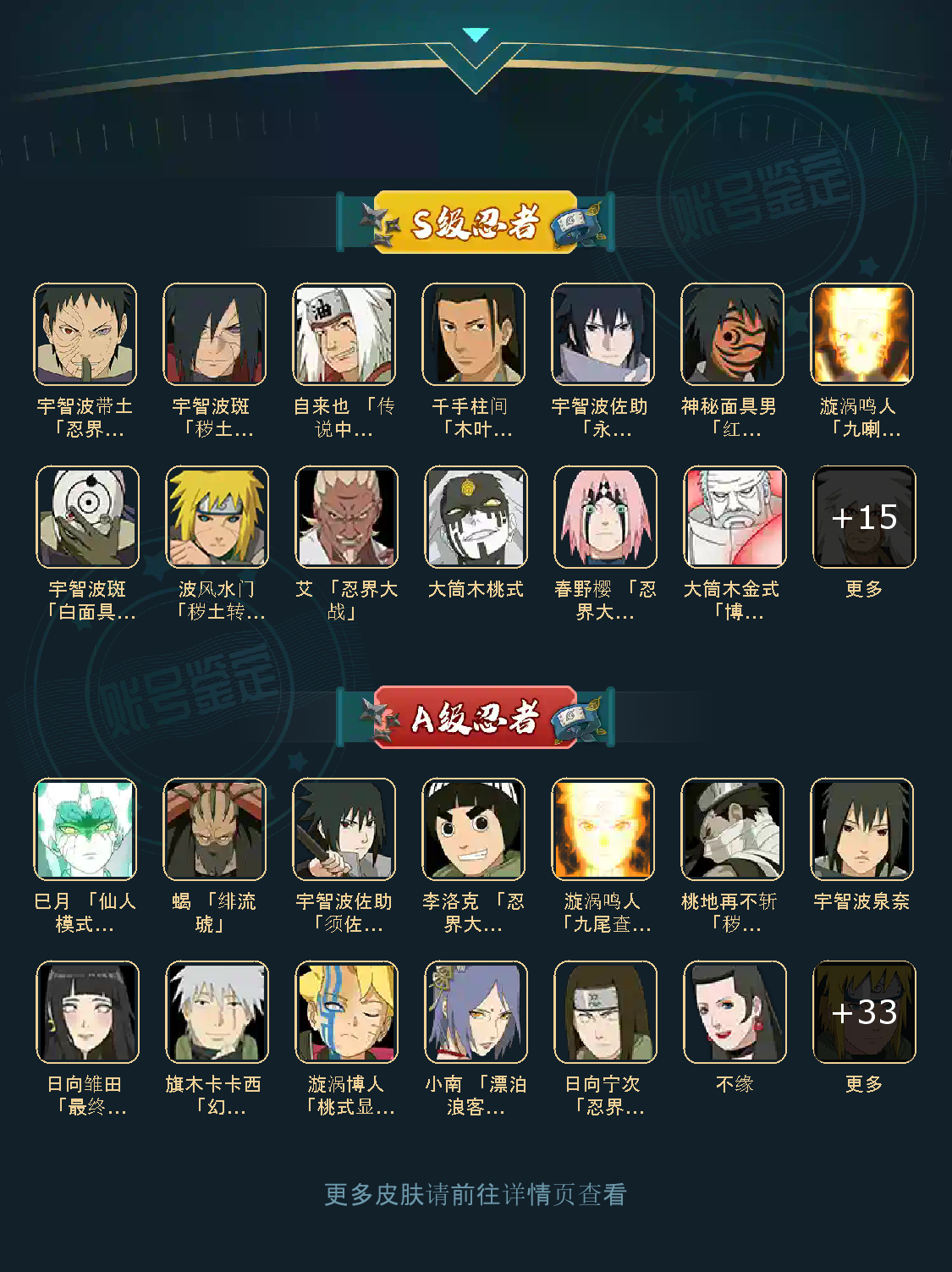 战力:1161W+;VIP11级;S忍24个;A忍39个,通灵兽18个,S忍:九喇嘛鸣人永恒万花筒佐助忍战樱大蛇丸普通纲手百豪纲手波风水门秽土水门秽土猿飞秽土扉间木叶创立柱间秽土解斑须佐鼬白面具忍战带土红夜面具男忍界大战艾三代艾二代土影无秽