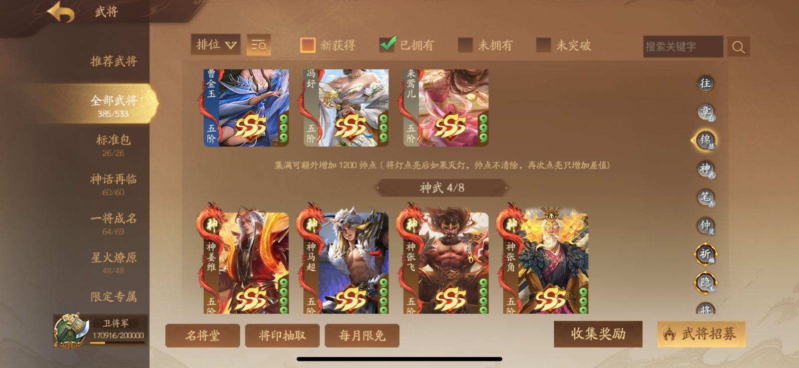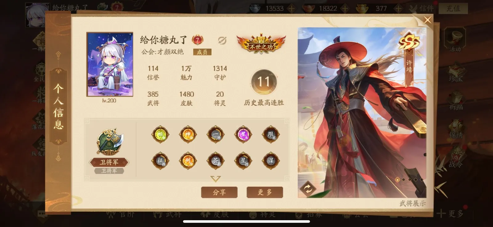 【全平台】 400将卫将军6神武许靖清河公主孙翎鸾庞会周宣乐蔡文姬薛灵雲张嫙刘晔曹金玉神马超神张飞神邓艾神张角